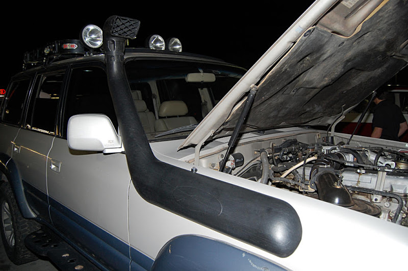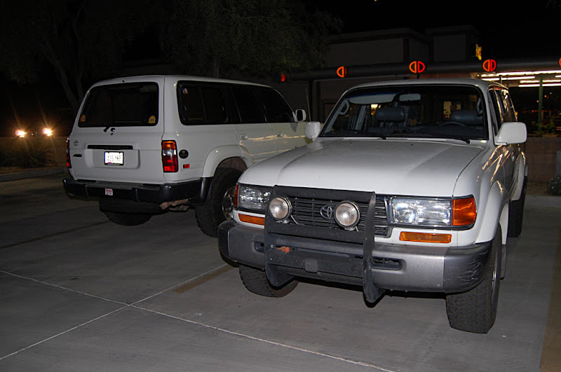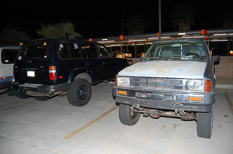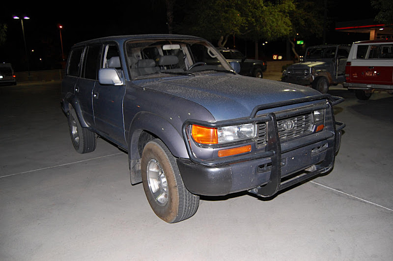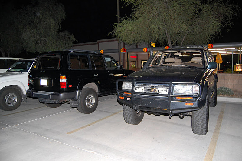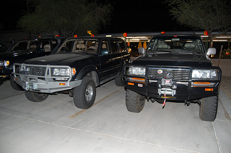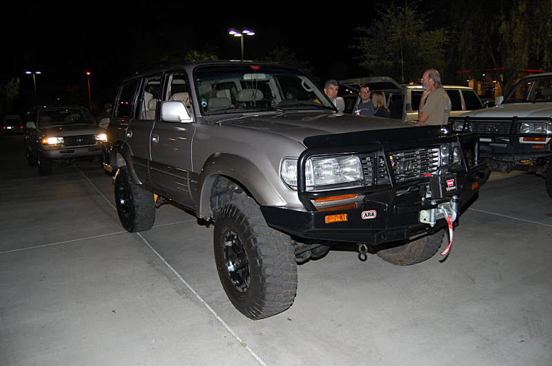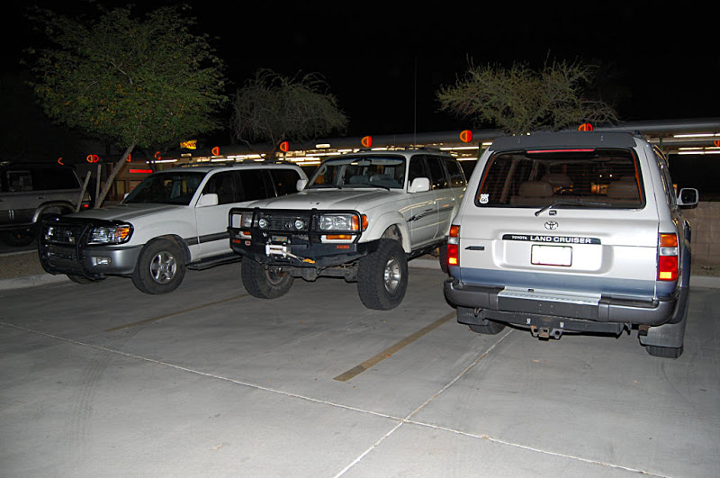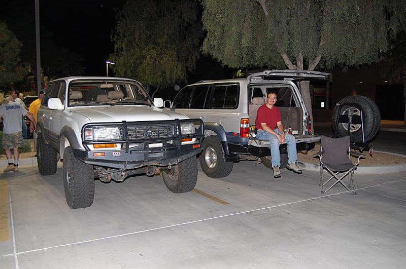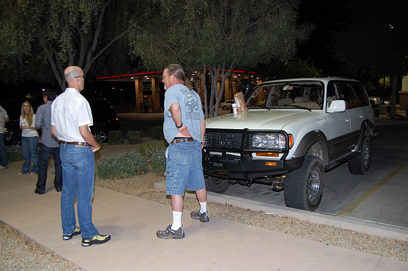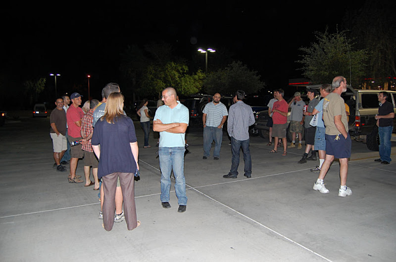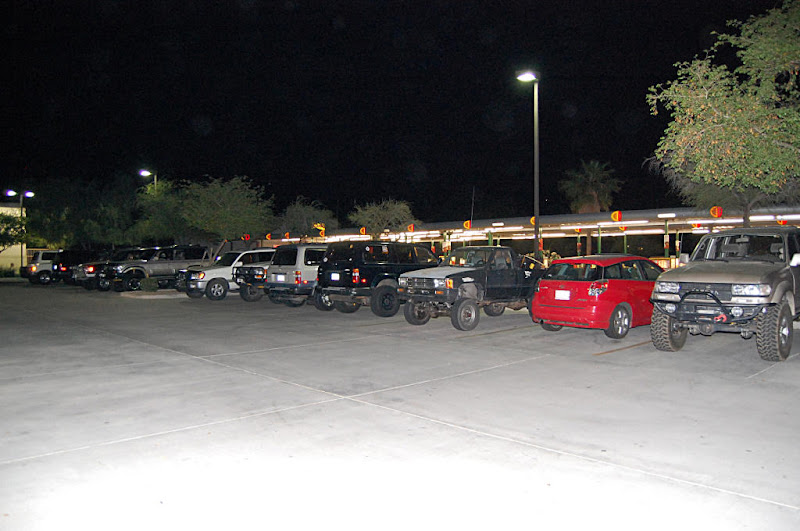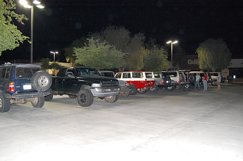 Once the meeting was called to order the group gathered in a big circle...We had the pleasure of meeting 4 new members, Scott, Nate, Romey and Anthony who stood in the middle of the circle , introduced themself and what they were drving. Then the interrogation began by someone (who will remain anonymous) with them having to line there trucks in a row so eveyone could scrutinize them... One thing I noticed with the 4 new members trucks it that they did not have a Snorkel(Dorkel) ...Wow...Imagine that.