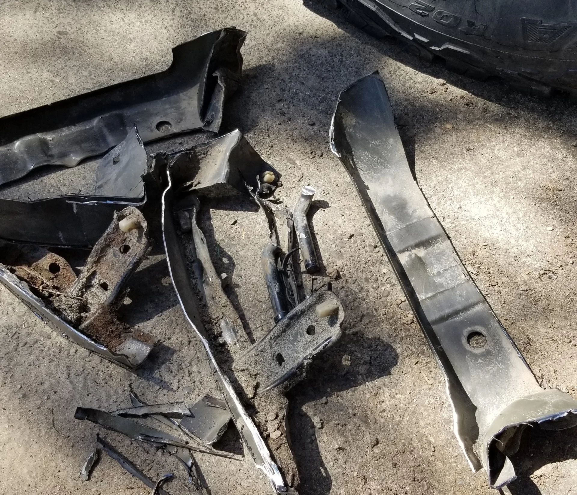 The tubing also extends to the frame just behind the rear wheels. There it bolts into the frame with plate steel.