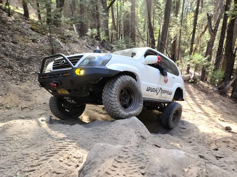 3” Dobinsons long travel MRA’s, homemade links and phb, body mount relocation, superpro Lcas, icon uca, spindle gussets, cvj cvs, blue pit Toyota hubs and bearings, marlin crawler cam gussets, bud built full skids etc. 295/70/17 maxxis rzr tires.