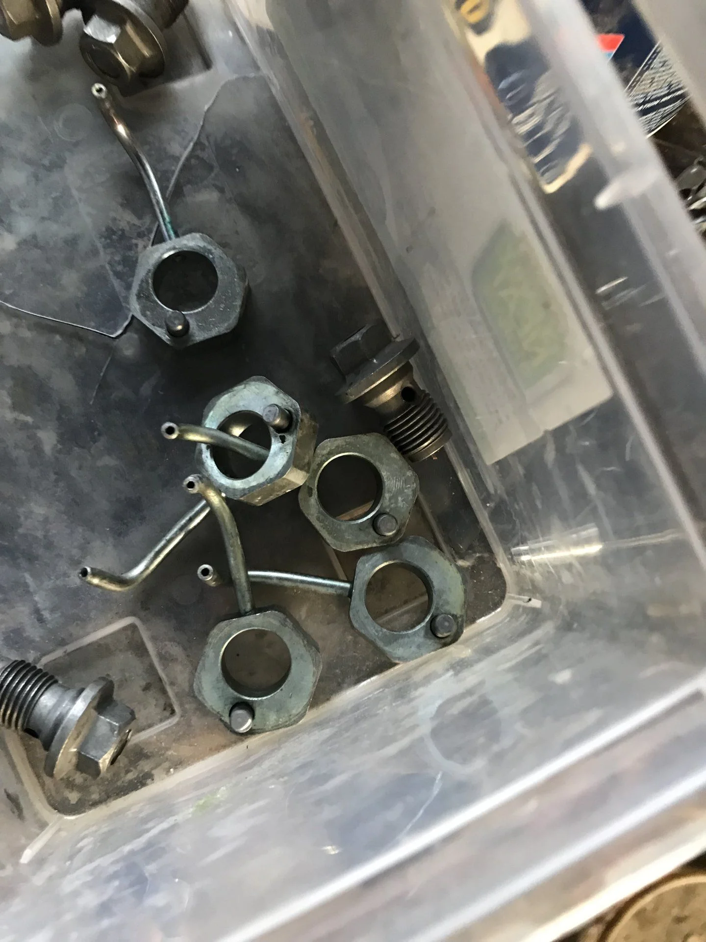 Not wanting to risk making my own and having them end up flying around with my crank... I decided to buy 6 new 1HZ/1HDT oil squirters.