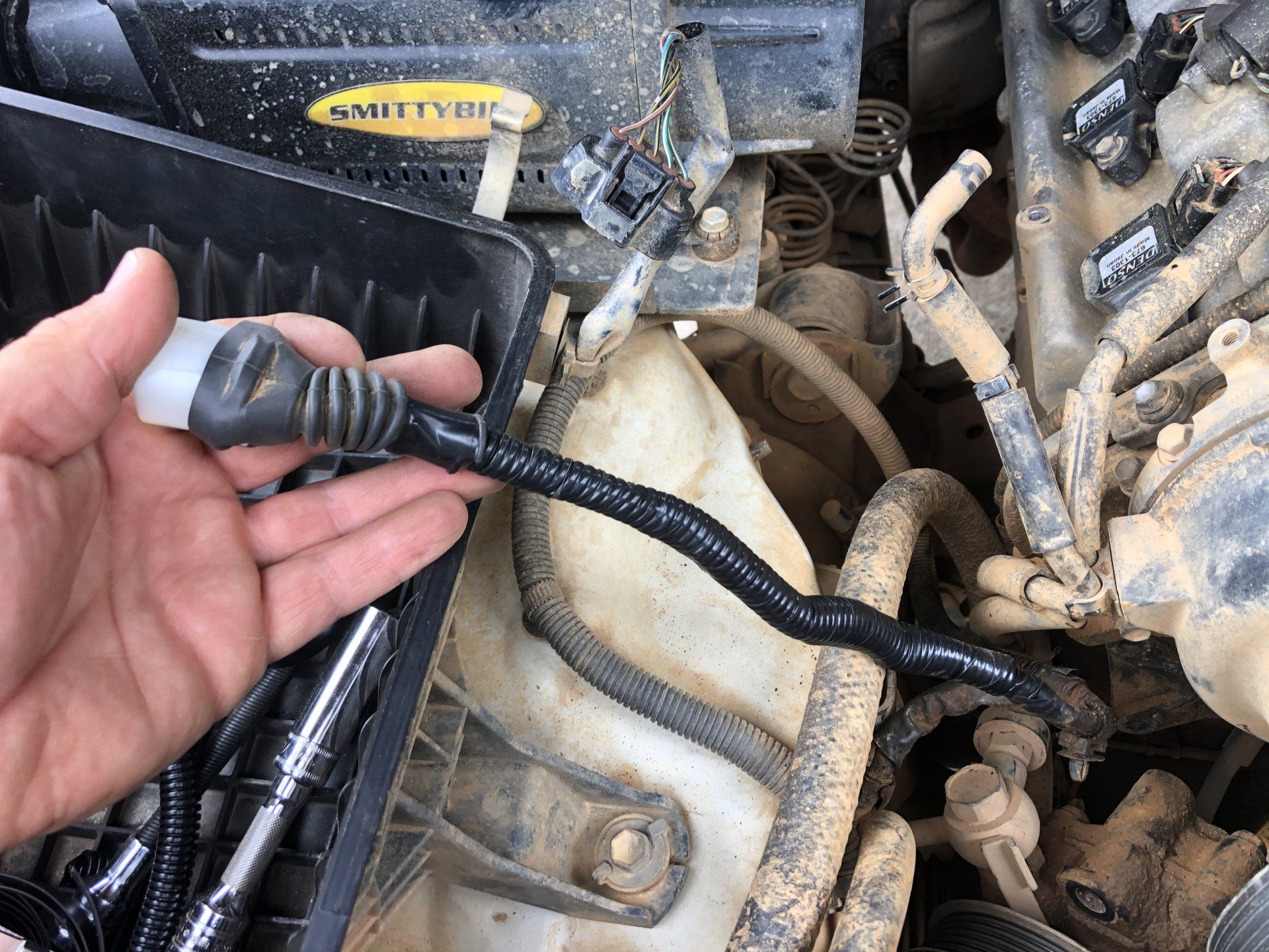 Next up wiring. I pulled the wires up into the engine bay and unwrapped the stock electrical tape. Then cut off the plug close to the connector so you don’t loose length but DO leave enough to be able to identify your wires. I then cut back the sheath the wires are in roughly 3/4-1 inch for working room. Then make your connections. You can solder but I just used butt connectors that double as heat shrink. I have no qualms using these vs solder whatsoever. I then heat shrunk again over those. I then fully taped over the wires and then placed them in split conduit. I then fully wrapped this again! You will see a place on the rubber boot where it’s designed to be taped over to hold it in place. Do it.