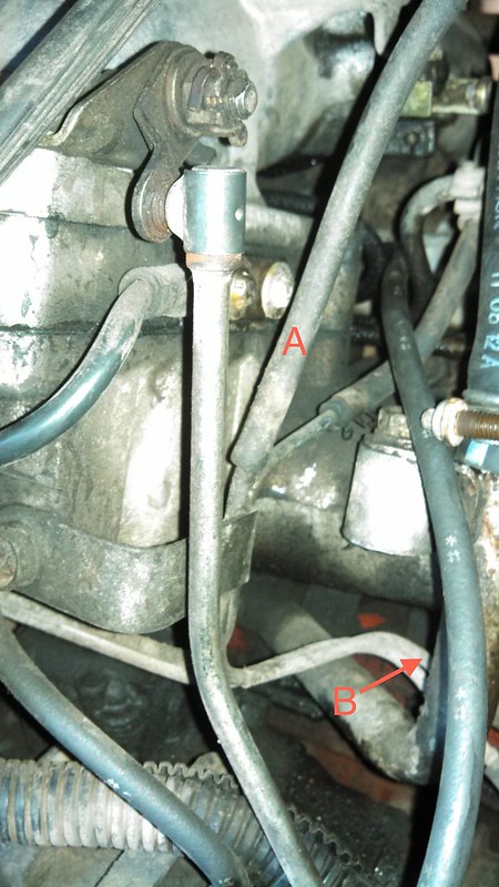 The VSV on your engine has been relocated too, with a direct connection to the air shutter bypassing the disconnected lines.