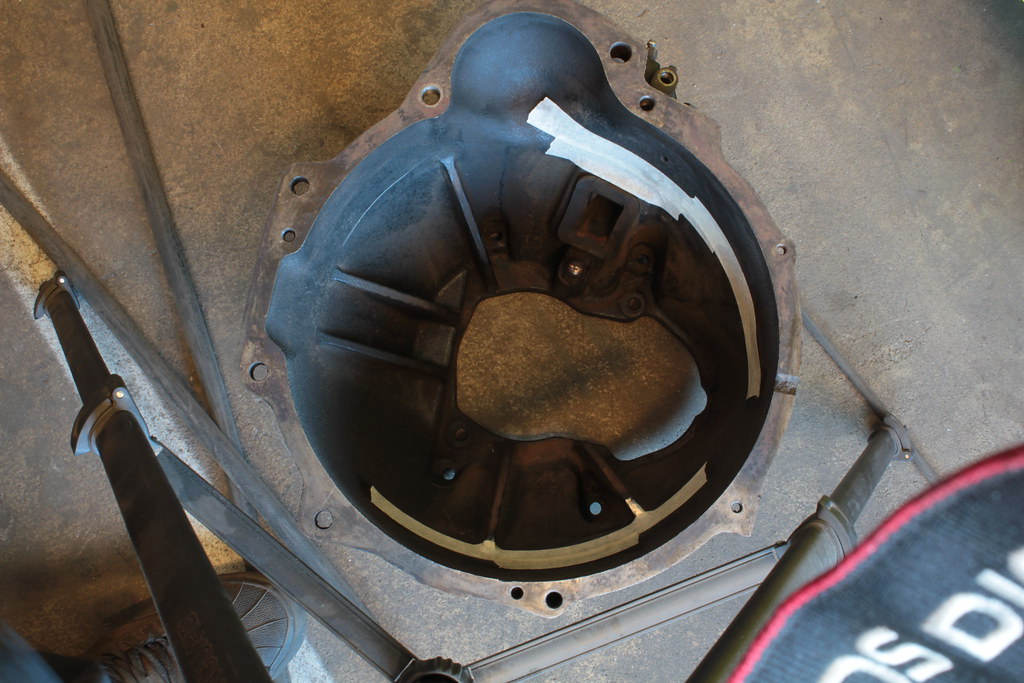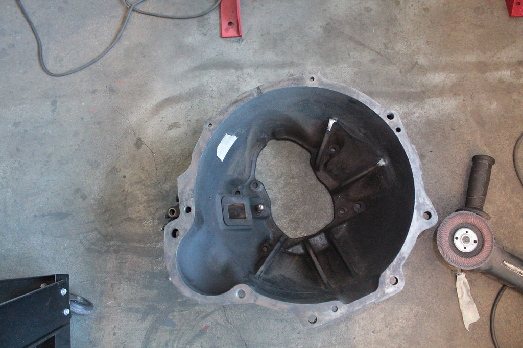 Its hard to see, but if you look closely i grinded a little of two of the "fins" inside the bellhousing, it might not be necessary, but i wanted to be on the safe side.