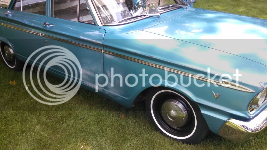 1963 Ford Fairlane Sedan Survivor, 40,??? actual miles. Miles go up as I drive it. 221ci V8 3spd on the column. Perfect interior and a awesome driving car. New tires, brake hoses and wheel cylinders and a tune up after sitting. Needs nothing but a new home, thinning the herd. Trim is excellent shape and weather strip and window felts are excellent. This is a striper fairlane with rubber floor mat and radio-lighter delete. I installed a secret auto sound under the dash other wise stock and untouched. Older body repair on the pass front fender/door edge where the lacquer paint is faded and a few dents and patina from age but no rust. Nice Nice car. Would look at side by side trade up or down or FToy trade up or down. what you got?