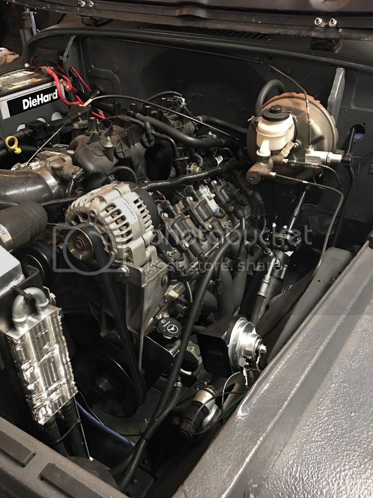 Electric fuel pump along with V8 conversion (comes with spare pump). Has 2 inline filters and uses a return line from the factory chevy fuel pressure regulator on the fuel rail.