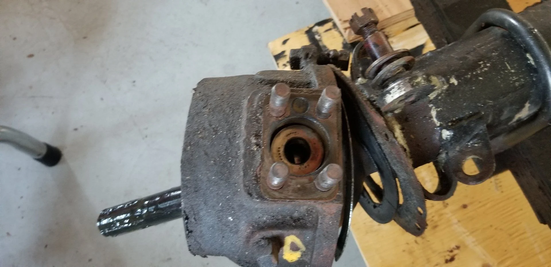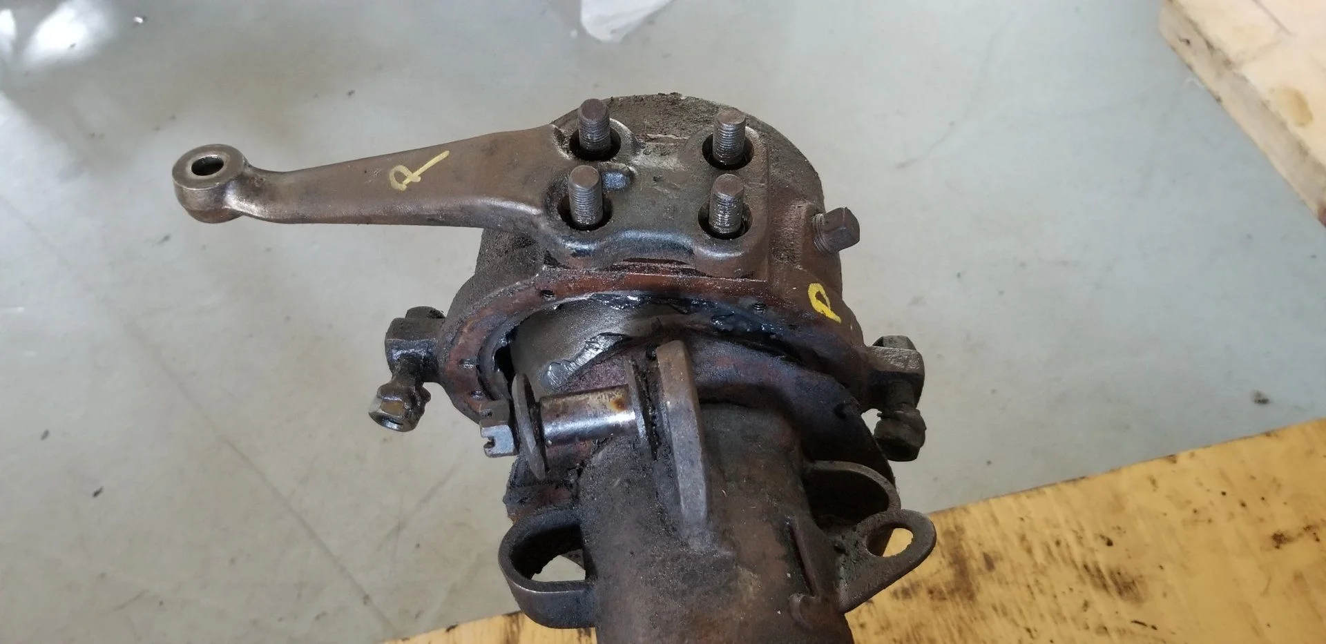 Thanks a lot. I got one side off, though I forget if it was the upper or lowerbearing place backed out first. The second side with the steering arm on it doesnt want either the upper with the arm or the lower plate back out more than1/4". The plates actually wiggle but I cant get them backed off the studs enough to get the bearing backed out and release the knuckle.