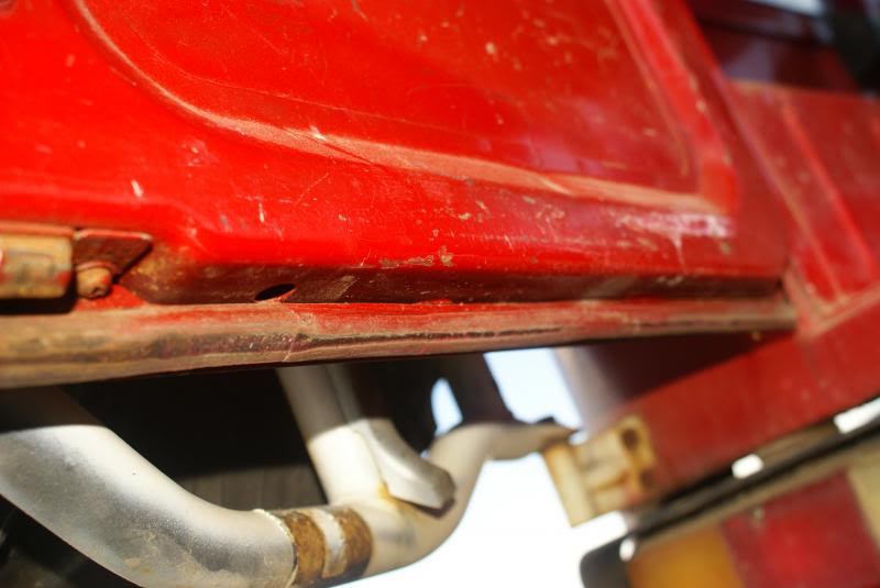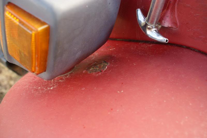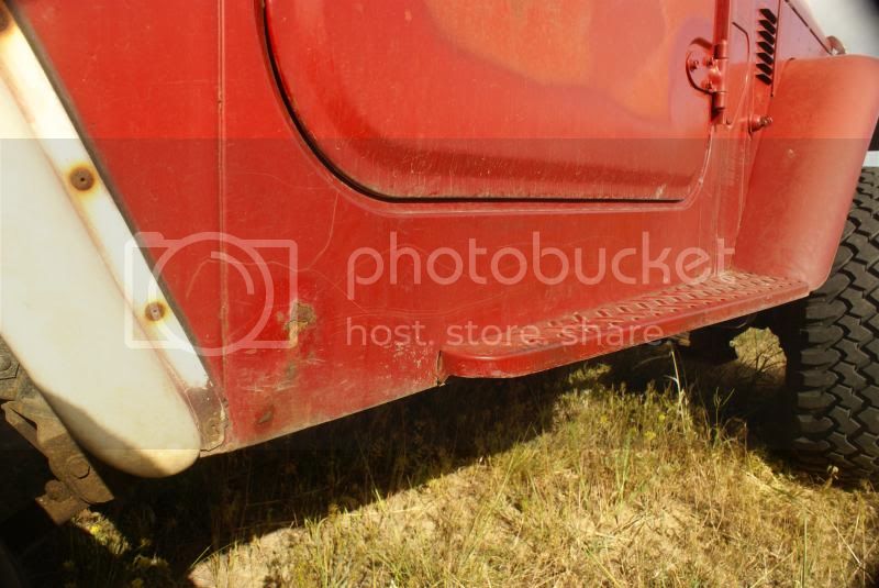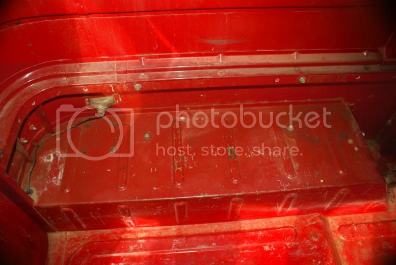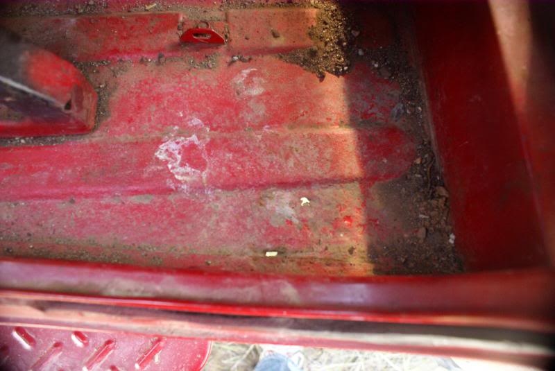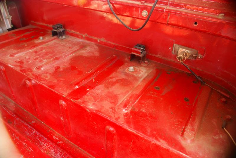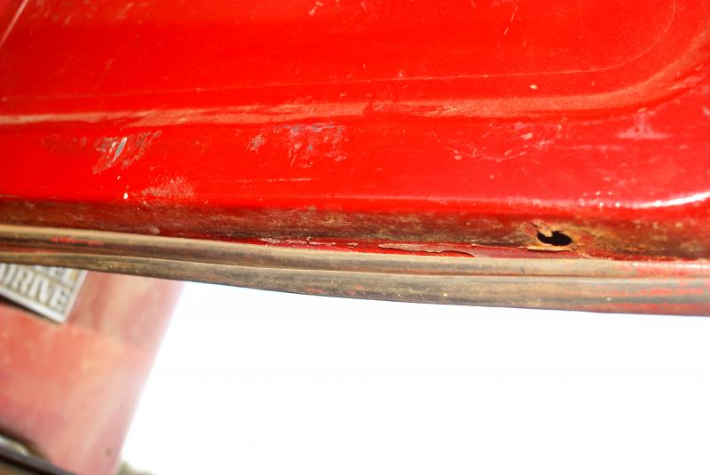 Great shape. Red. A little rust in the outer rockers and behind the front indicators. Couple of pin holes beside driver's seat, but otherwise rust free. Rear sill and deck are rust free as are the corners. This 40 was originally an AZ vehicle.