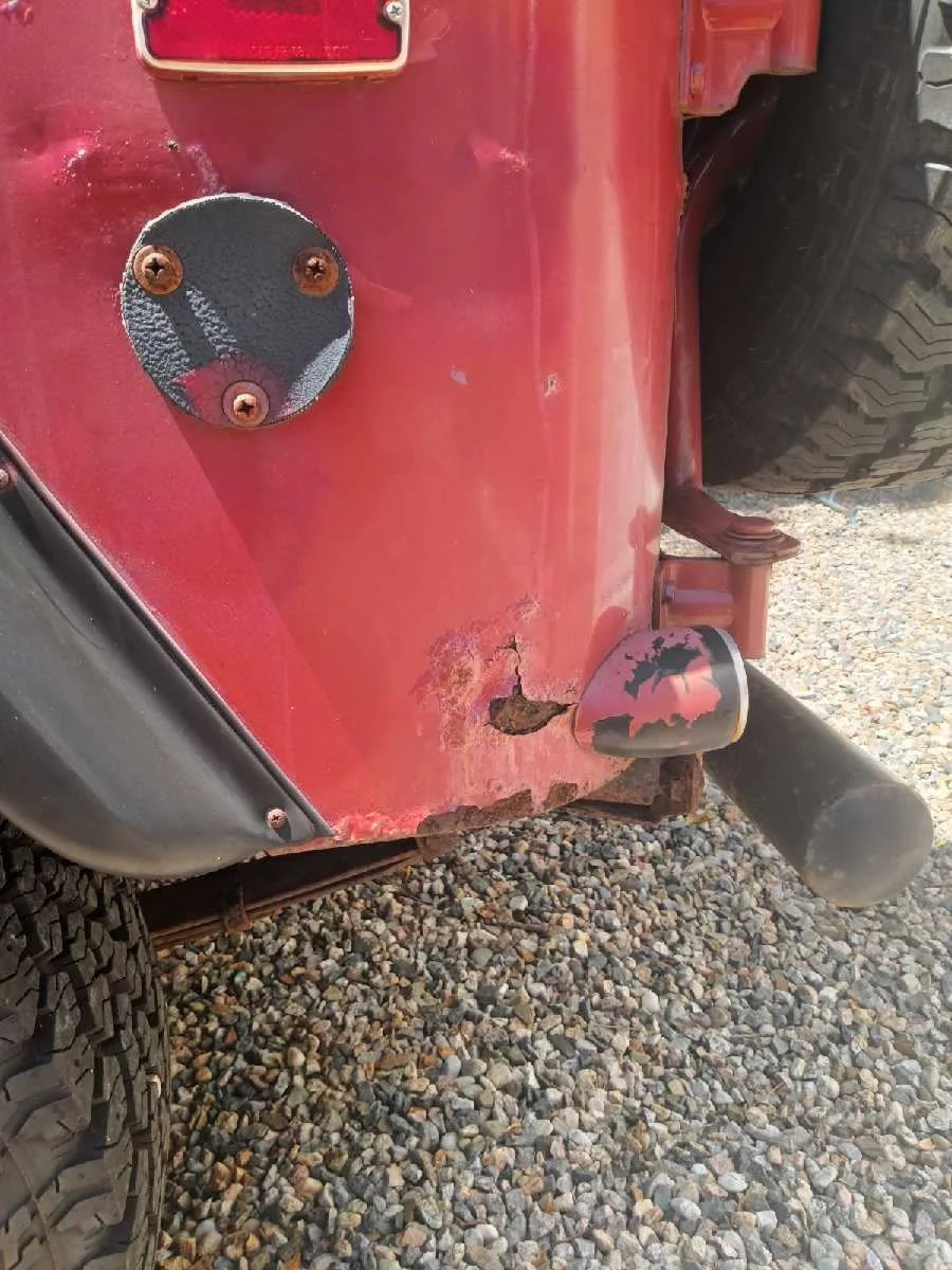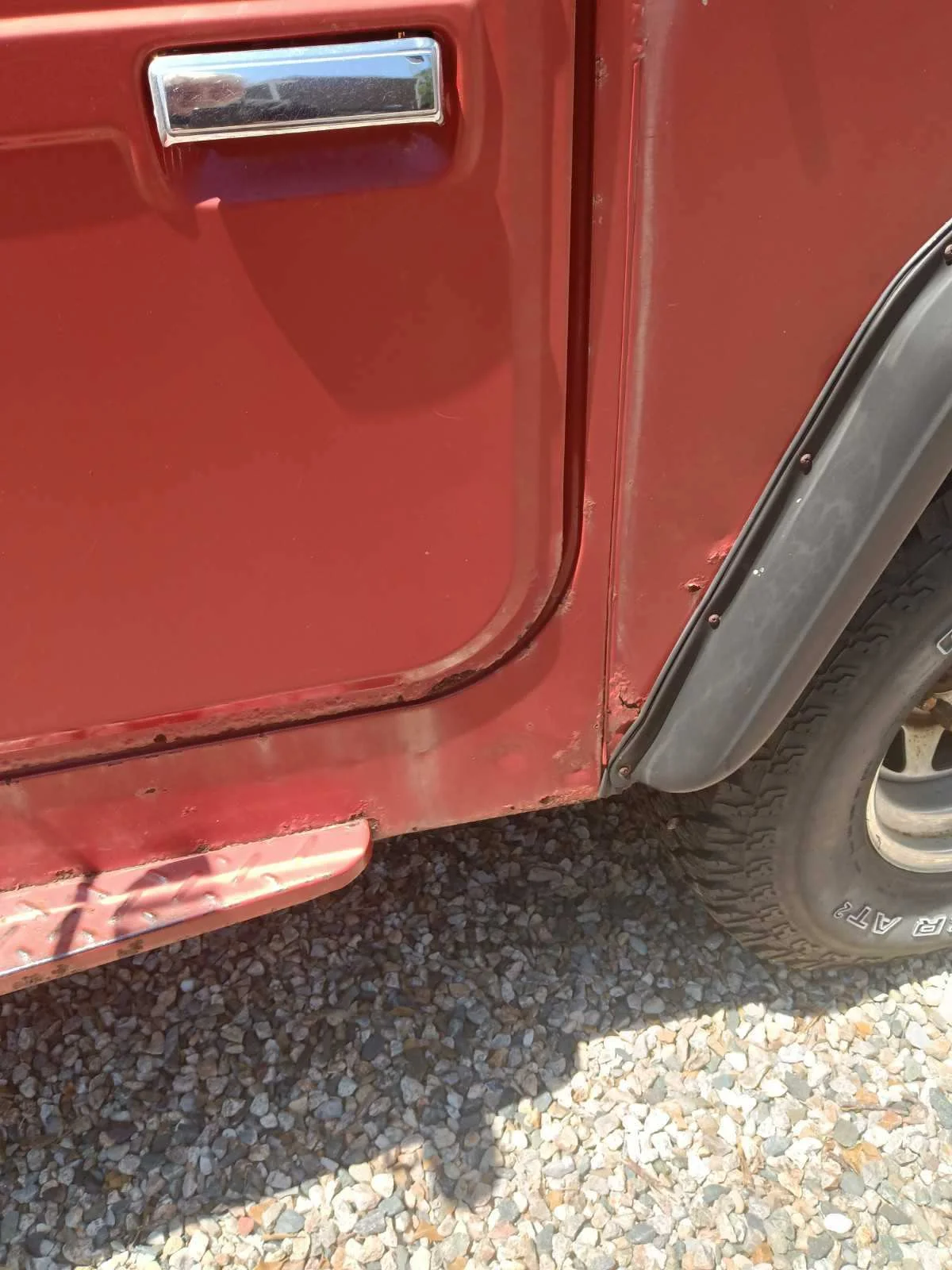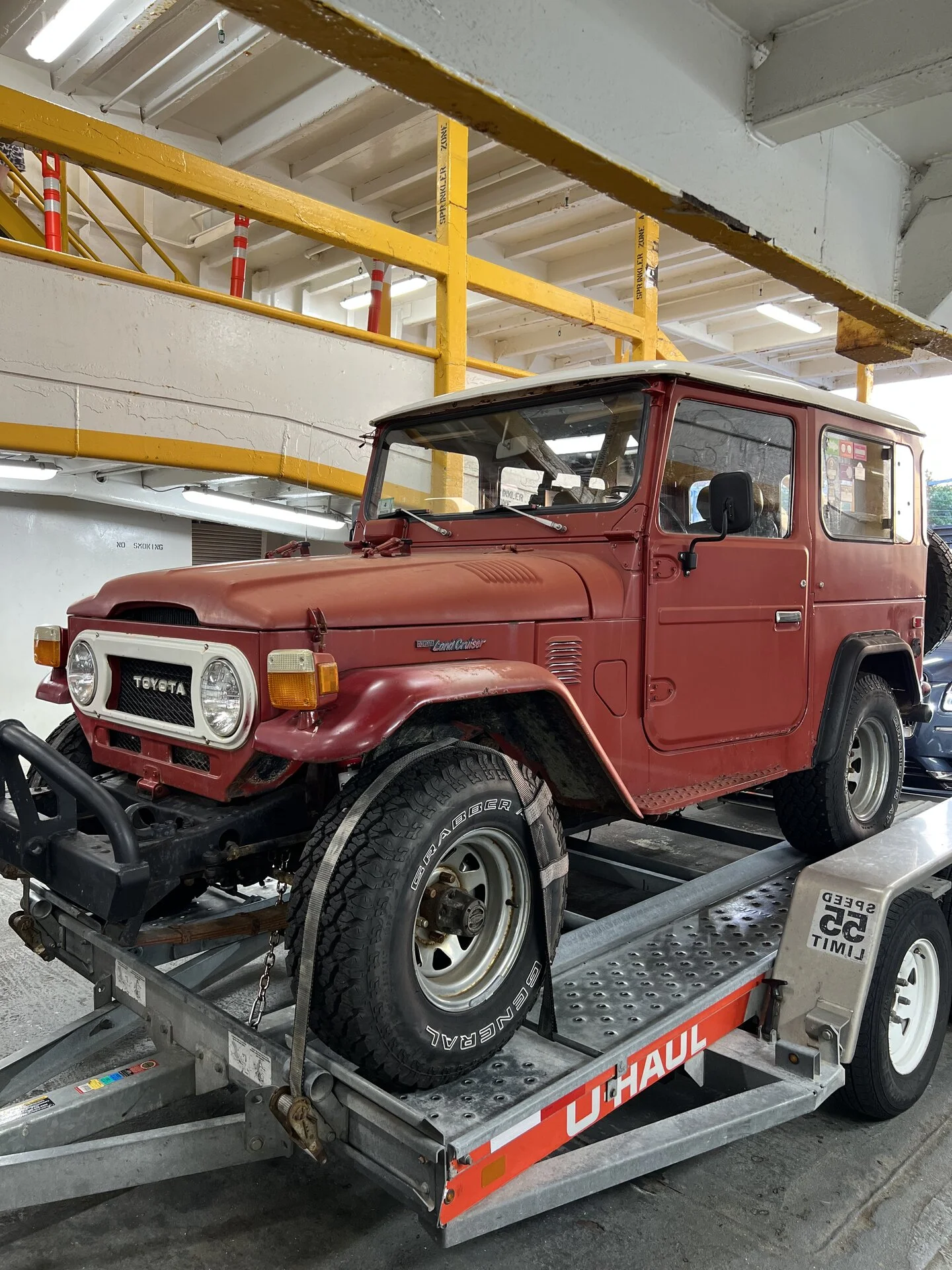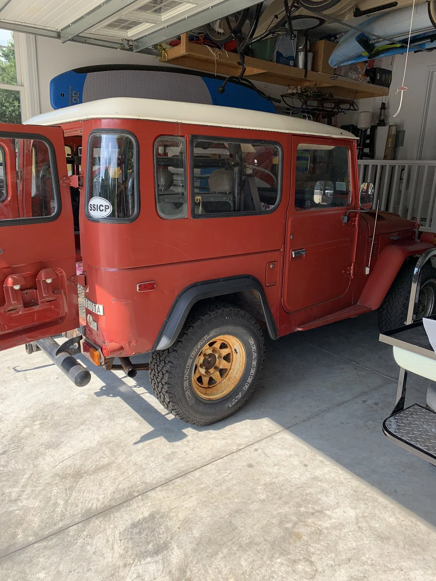 So, as i mentioned in my midlife crisis post - the FJ43 from Colombia may have to wait a bit. My son picked up this 1977 FJ40. I was a bit skeptical at first but it is actually not as bad as I was expecting (at least not yet). Appears to be pretty much all original with the exception of a dealer in stalled air conditioning (i think). Frame is solid with some crust on it. rear sill is shot as well as rear lower quarters - hope to fix those after we can get it running decent. Smokes sometimes - not all the time. Was reported to be sitting a couple years - hope rings ain't shot. Tune up in the near future after I all the parts I ordered delivered.