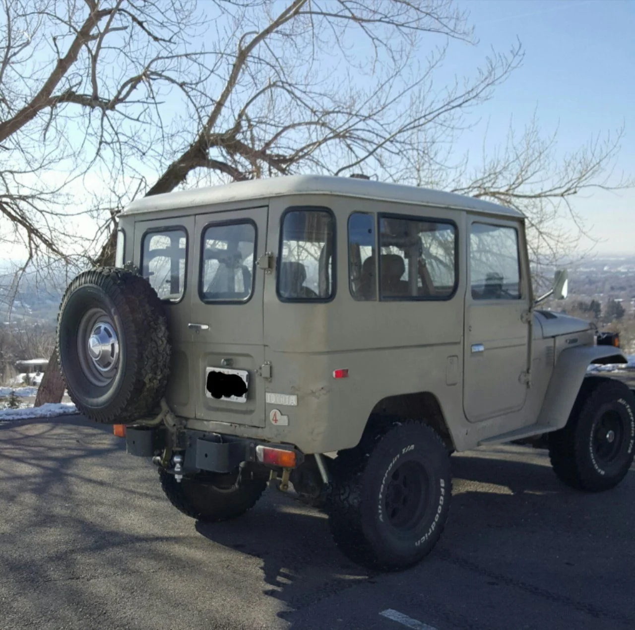 This is a 1977 fj40 Land Cruiser with the 2F original motor, axles, transmission and, transfer case. Motor runs great, still has original smog equipment and I have used it as a daily driver for over a year. I have added Saginaw power steering with a Cruiser outfitters drag link and steering joints, brand new Saginaw box and pump. The suspension has brand new Old Man Emu Leafs, Man-a-fre shackles, and Bilstein shocks. Tires are 33x10.5 BFG all terrains. Seats are original and have been re-upholstered and are in excellent condition. Rear seat is out of a Jeep wrangler and has anchor attachments for car seats; I also have original long jumper seats that are in original rough condition. Center console is a smittybuilt, but I also have the original center console. I have the original hard top, original ambulance doors, and a bikini top. The body is not in great condition and has some rough spots of rust. I do have a new rear seal to be put on under the rear doors. The exhaust is brand new and is a new old stock oem toyota kit.