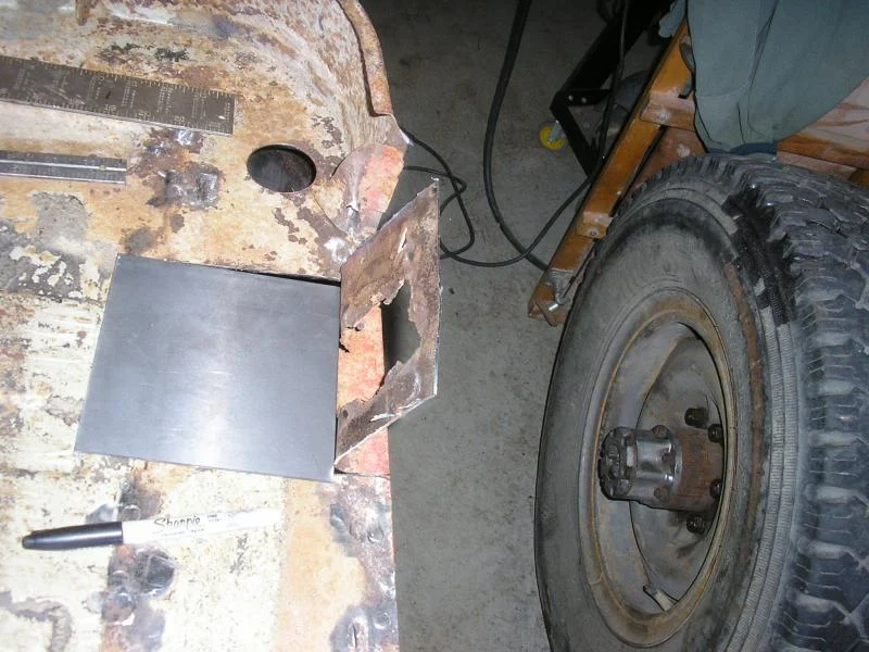 Also cut a scrap for the cab mount rust hole