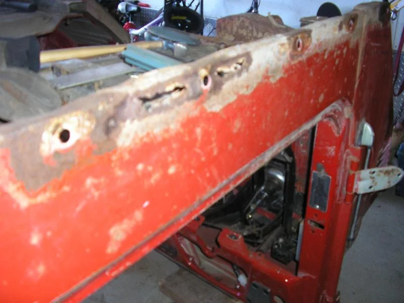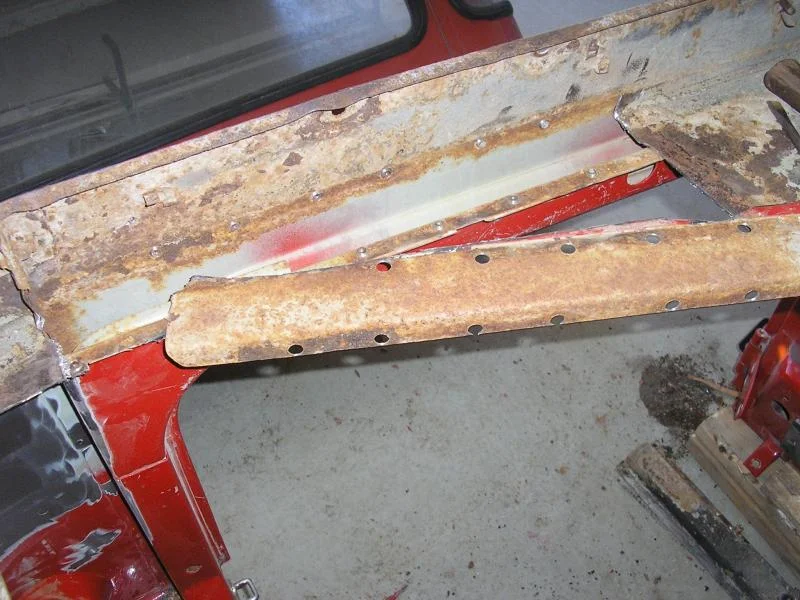 Here is the rust from under the side steps - also visible without the blur above. If I have to replace this metal I may as well cut far enough down that I can get into the floor and address the spot weld flange where it is rusting nearly bad enough to start bulging. As mentioned above I will be going all the way back to the rear corners where they are also bulging with rust. The whole tub will be blasted later this summer but I cant blast inside the joints where it is need the most.