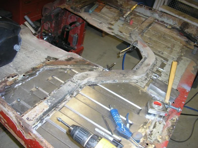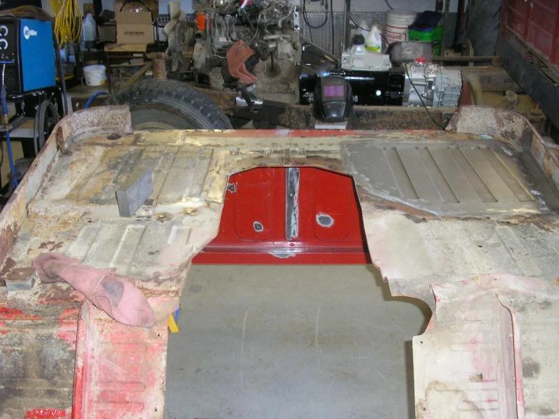I decided that rather than alter the cross member like miker did I am just going to slide it back 7" to match the tranny cutout. I may add another short section of channel going from the cross member forward to stiffen the floor more.