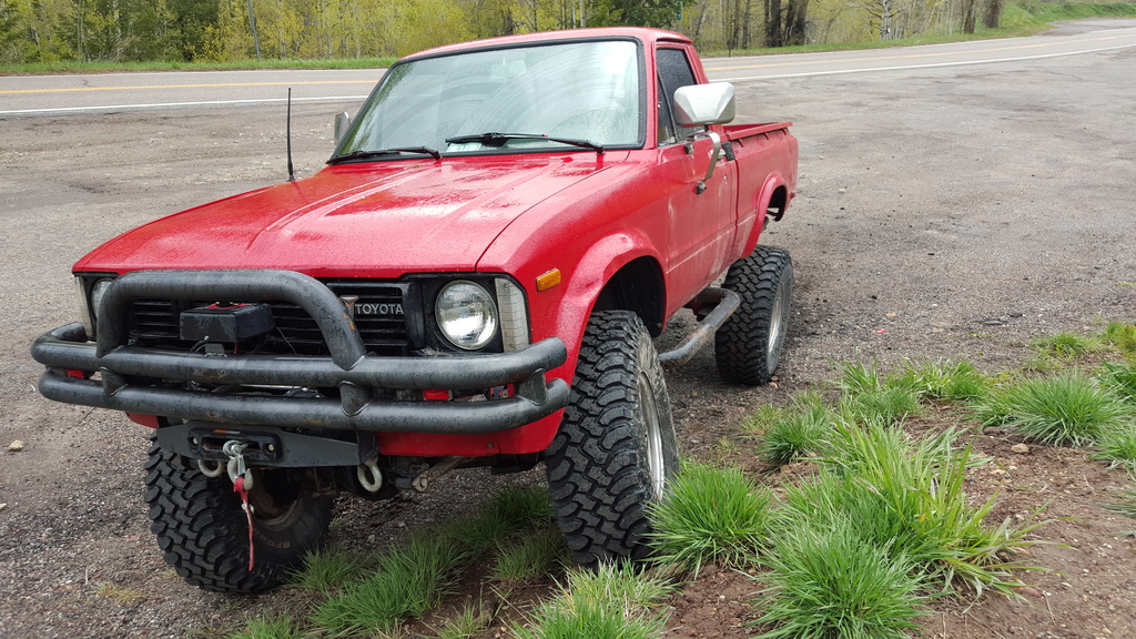 I have a new to me 1980 pick up. Picked it up yesterday and am very happy with what I am starting with. Its a 1980 pick up with unknown lift, new 33 inch tires, high steer and a 2000 3.4 liter with auto tranny. Stock 4 cylinder transfer case.