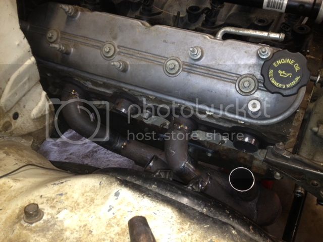 Other than that I bought some used headers and started cutting the passenger side up to make my exhaust. Drivers side fit fine, mounted in the normal fashion. Passenger side I'm redoing the header to exit forwards, going to run the passenger side in front of the engine and around the drivers side. (used my mig to tack the runners on the truck, headers will be fully tig welded after mockup) 2.5" off the headers into a single 3" out the back.