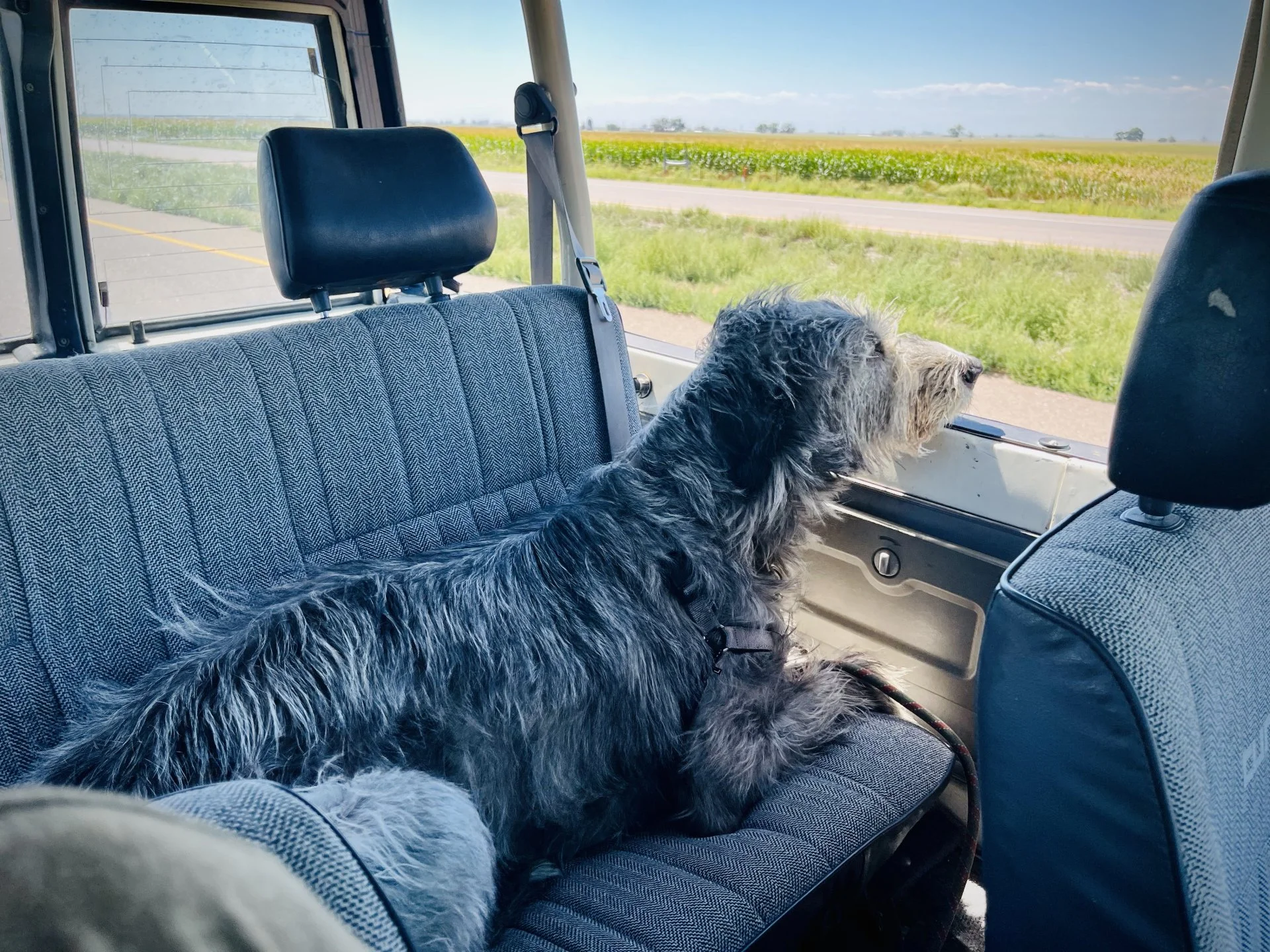 Today was just a part store run into town to get some bolts for the project on my daughters 4Runner. The wolfhound was too lazy to even stand in the back this trip, but he loves the softtop.