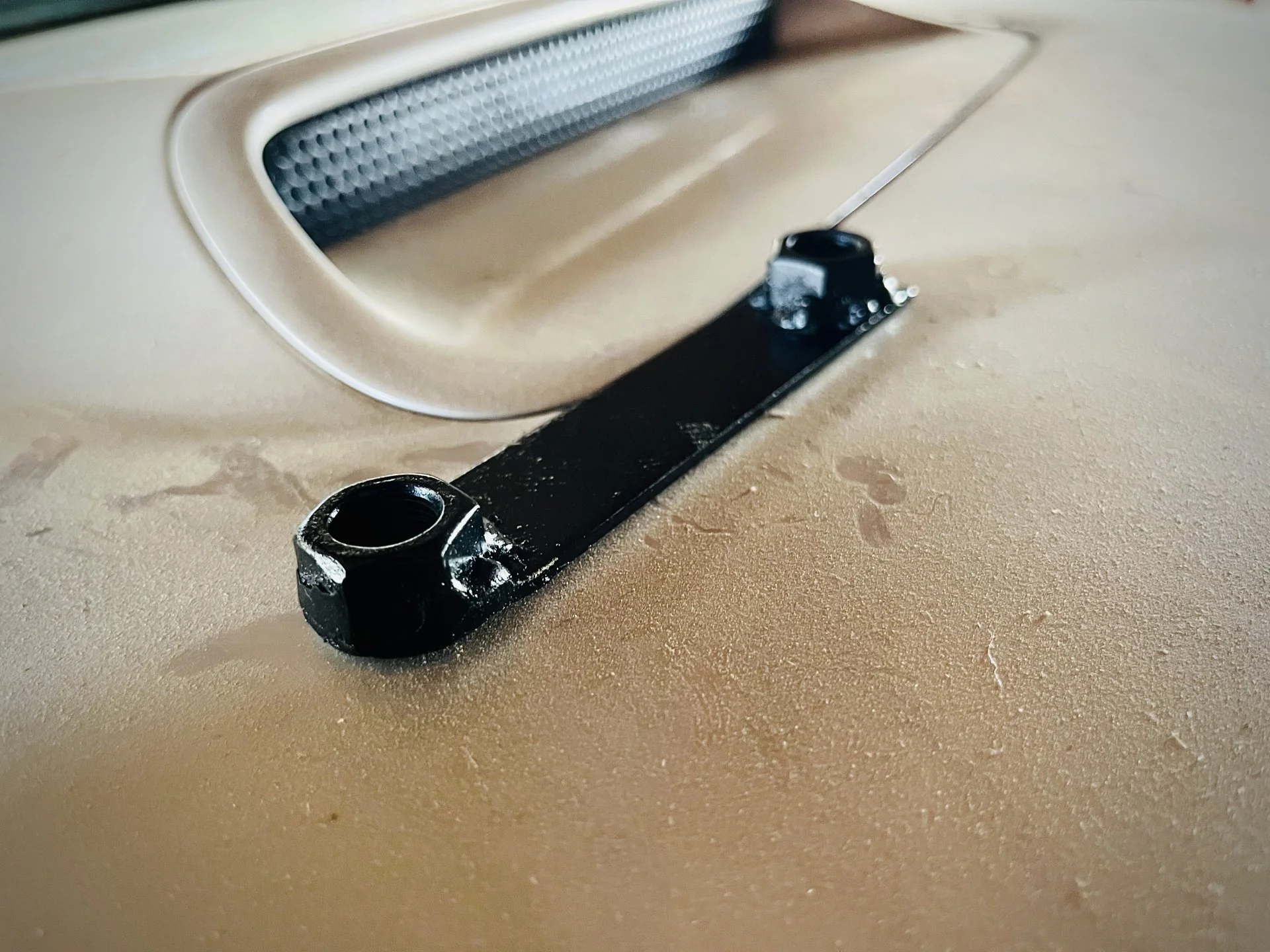 The bracket I made to hold the nuts on the bracket to tighten the steering rack.