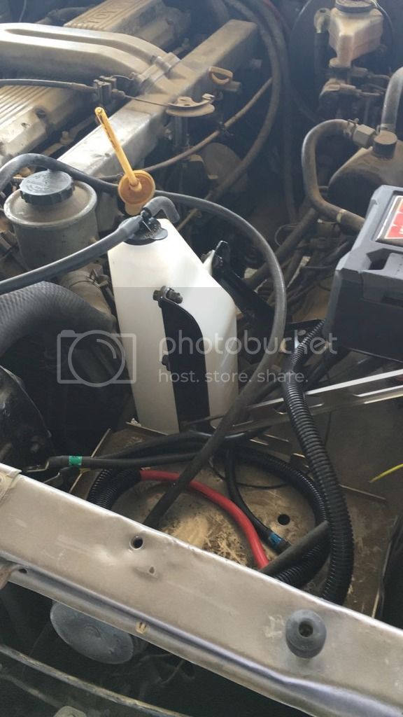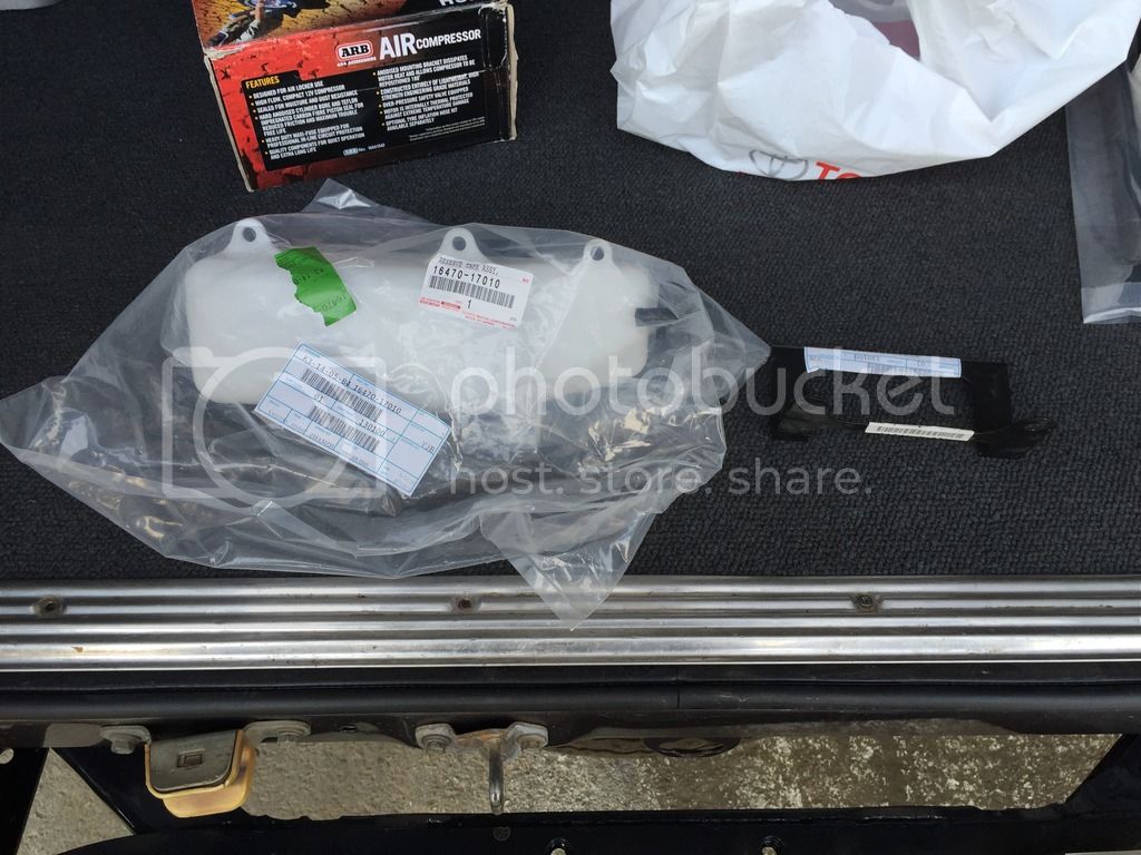 The coolant overflow bottle, being that we had to relocate it when installing the aux battery tray was taking up more space than I wanted. Additionally, it was looking worse for wear, so I decided to get a new one. Alas we could not track one down, so we picked up a 70 series 1HZ variant, which having received it, I think is much better than the 60 series. Its sleeker, and comes with 4 bolt holes for different mounting positions.