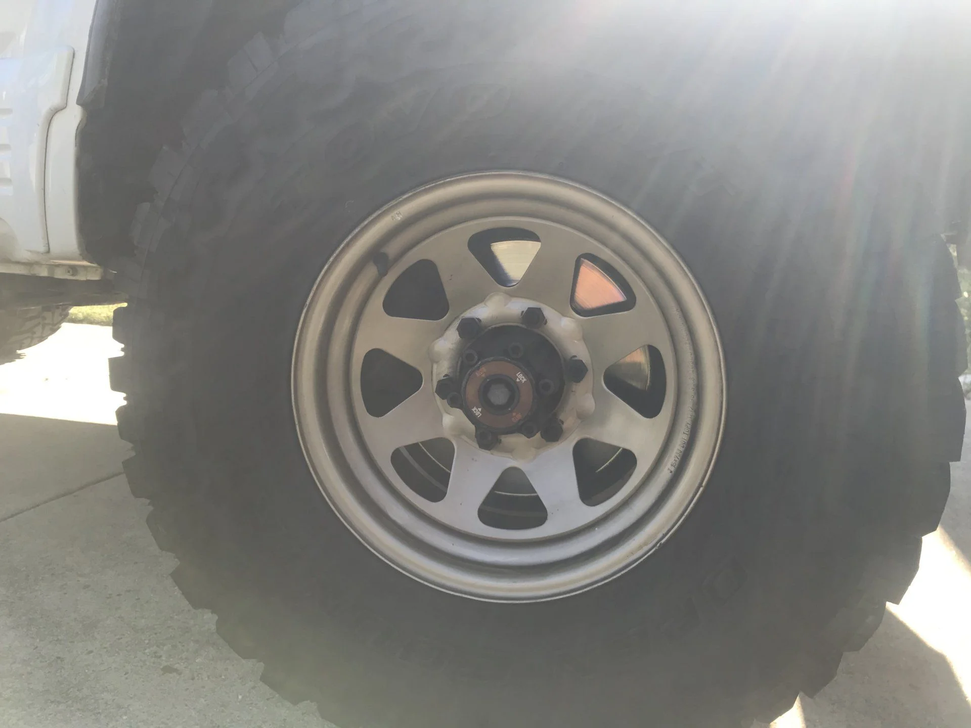 -2 inch Pro Comp lift with 33x10.5” tires on original 15” Nissan steel wheels.