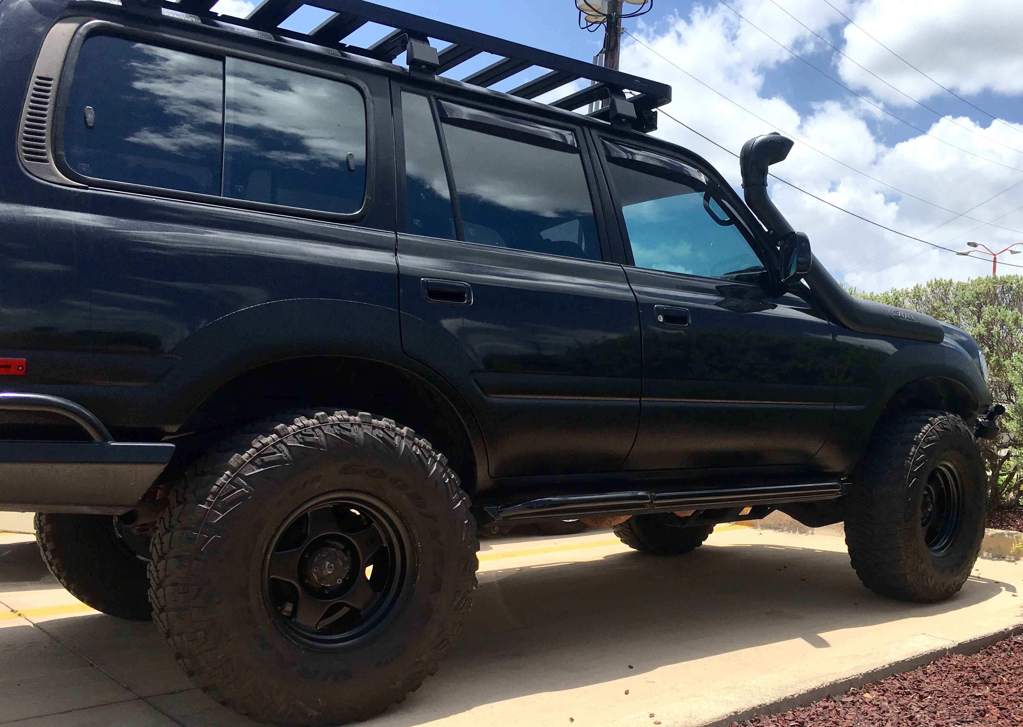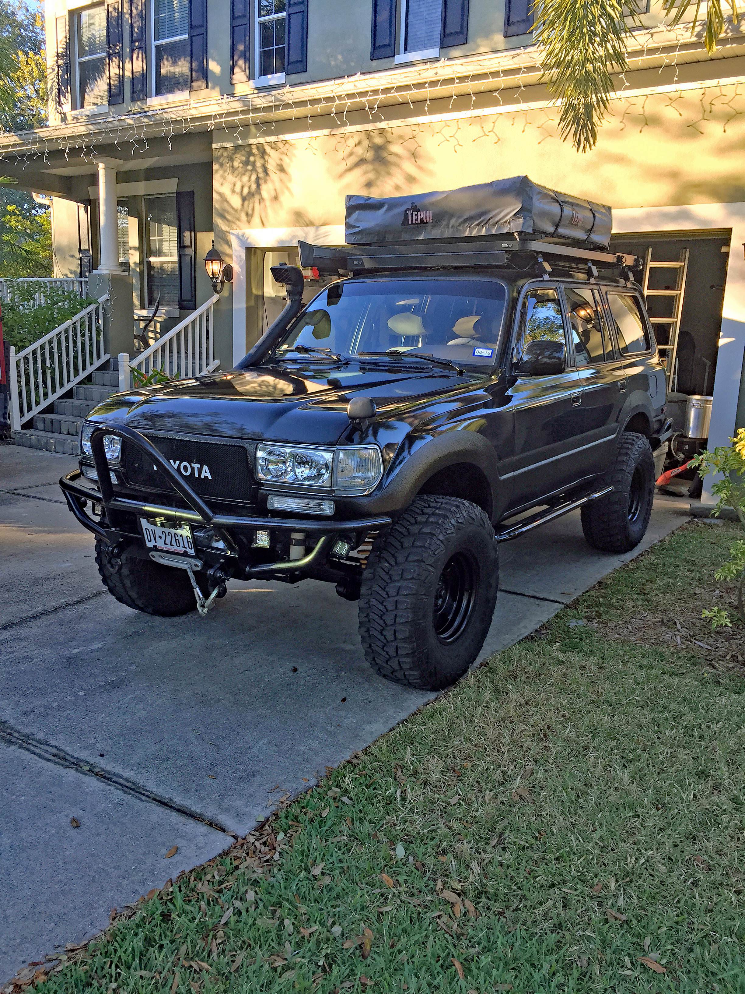 I am the 4th owner of this expedition ready 80 series Land Cruiser and have service records (3in thick!) from all prior owners. She was kept mostly stock until the 3rd owner started modifications to improve off road capabilities. When I acquired her (Dec 2015) I took her a step further. I completed body repairs/paint (color swap from red to black), interior refresh, stereo/speaker upgrades, added a Slee rear bumper, Front Runner roof rack with tons of accessories, snorkel and much more... Has more LEDs and lights than anyone could possibly need and is a head turner everywhere it goes. She is triple locked and has been a blast to drive…runs great and will go anywhere!