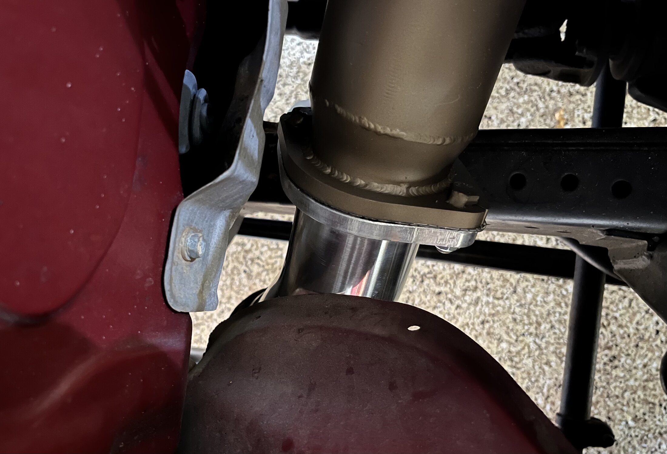 Can you share a photo of the flex pipe in wheel well. Curious what your clearance looks like.