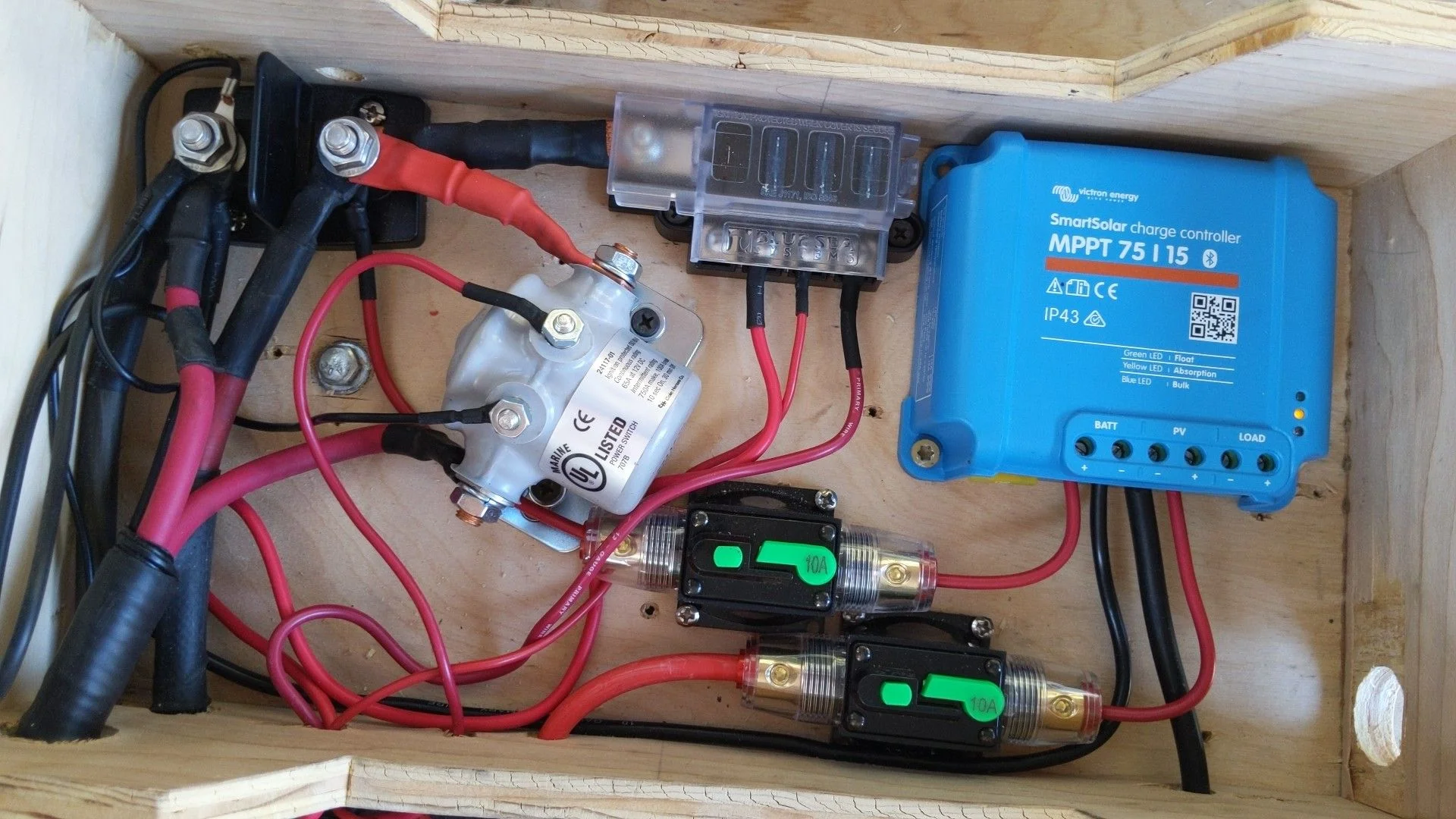 The fusebox also handles 12V chargers/outlets, the fridge, the ham radio, and...probably a couple of other low-range things.