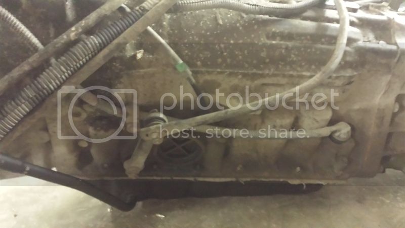 1uz trans showing the shift linkage (opposite side of prado) and no space to mount the T Case linkage pivot arm