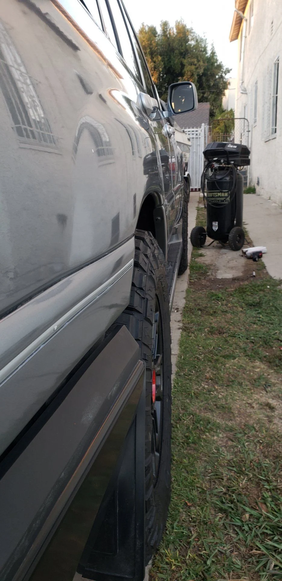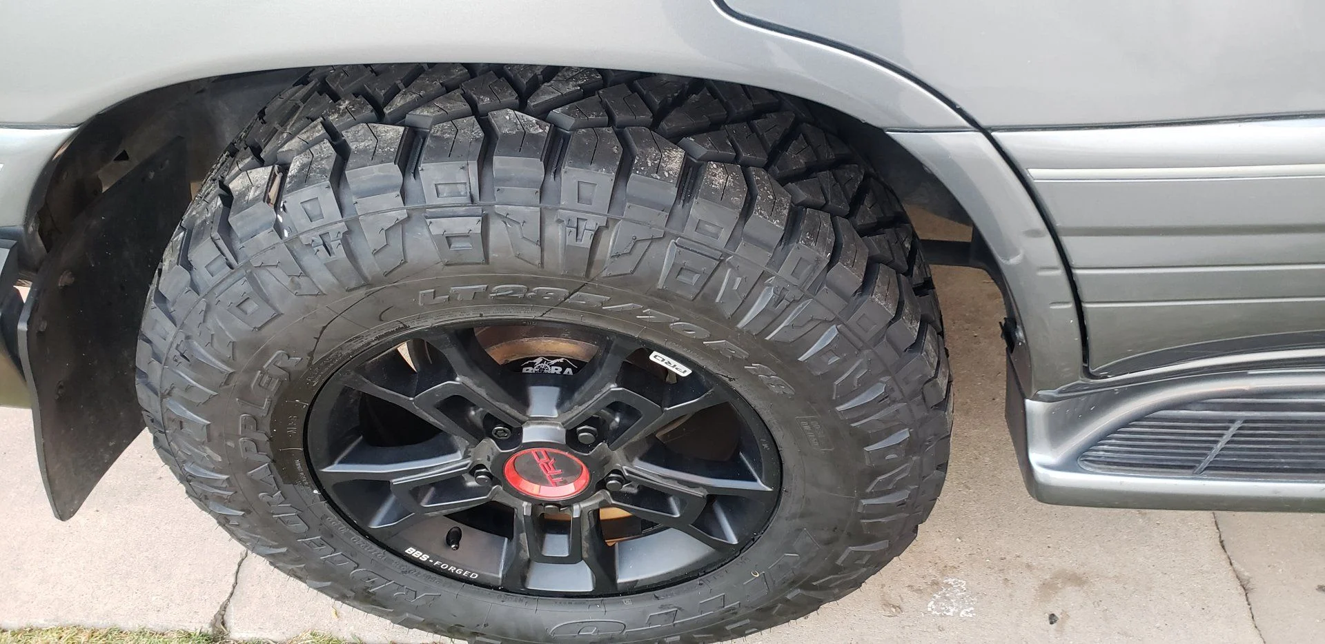 My buddy’s 01 LX. AHC raise, 285/70’s on some sort of 18” 200 wheel. No spacers necessary with the domed caps. He trimmed some plastic to fit the tire. I like how the added width of 285’s vs the normal 275’s fill it out. Not on rails any more.