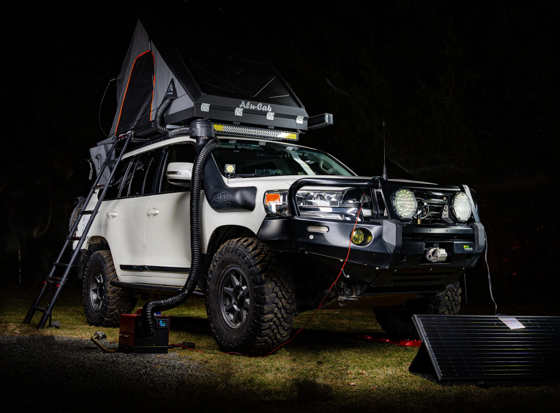 picked up an alucab roof top tent! Tested it out in 10-15F weather with a diesel heater. The built-in vent port worked great. The mattress was absolutely terrible, so we replaced it with an exped megamat duo.