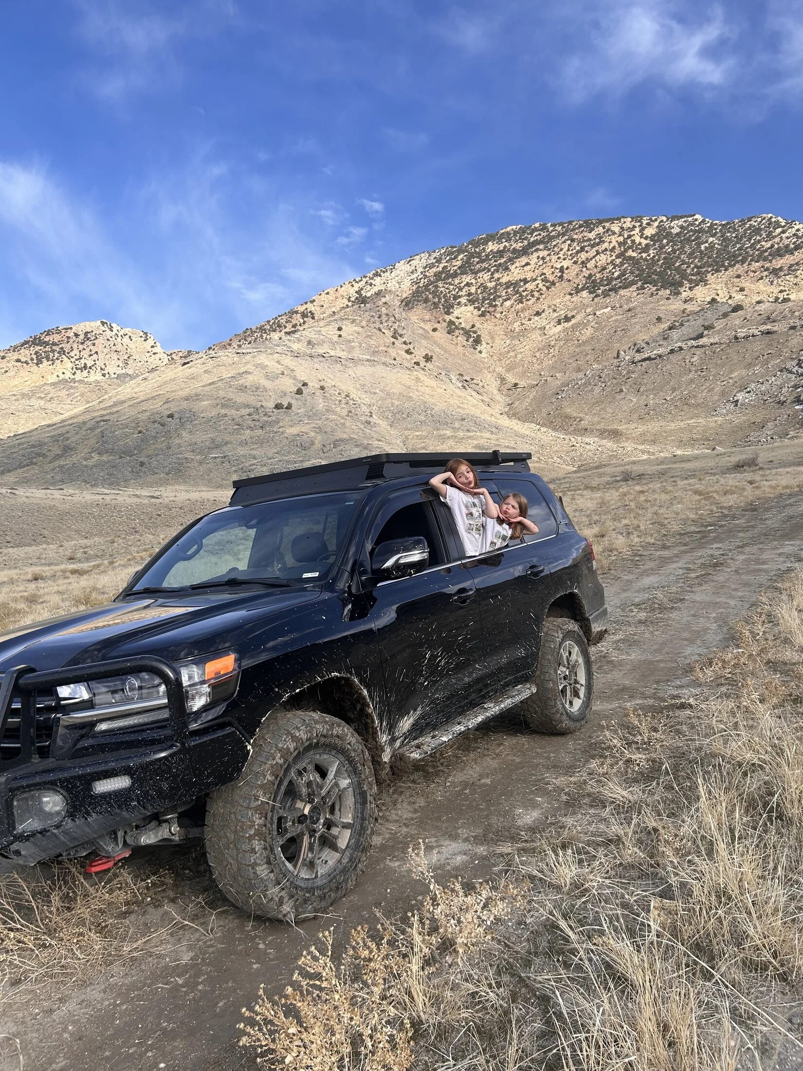 I hate mud but can’t hate my little budsThis may be the photo where my kids look back and say, “yeah, we grew up in land cruisers”.