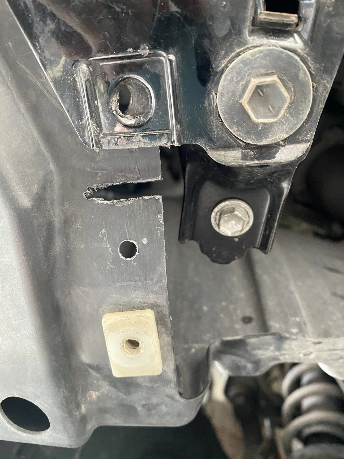 Some of the trimming involved. Sideskirt bracket was bent back, redrilled a new hole and added a longer bolt to pull in this area of the sideskirt. Liner needs to be heated and formed as well, which I performed after taking this photo.