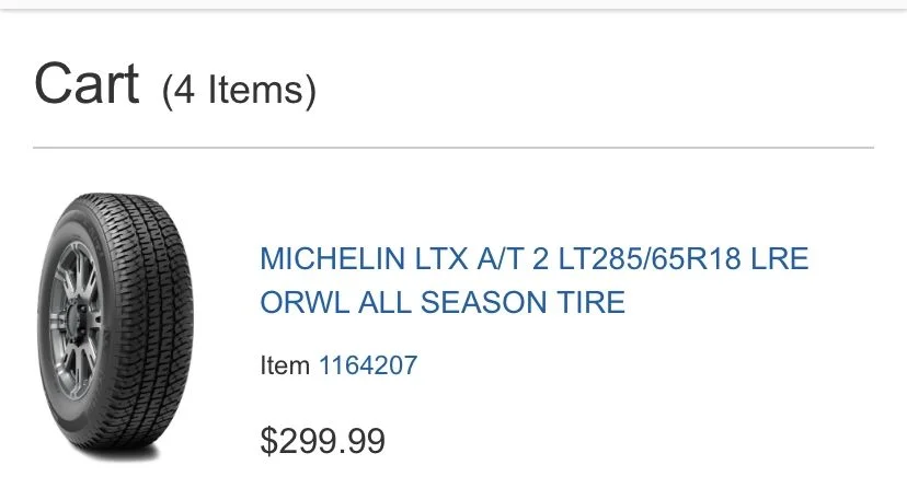 Has anyone being able to convince Costco to install Michelin ATX L/T 2 285 65r18 on a 200 Series LC? Replacing tires on the stock LC on the left