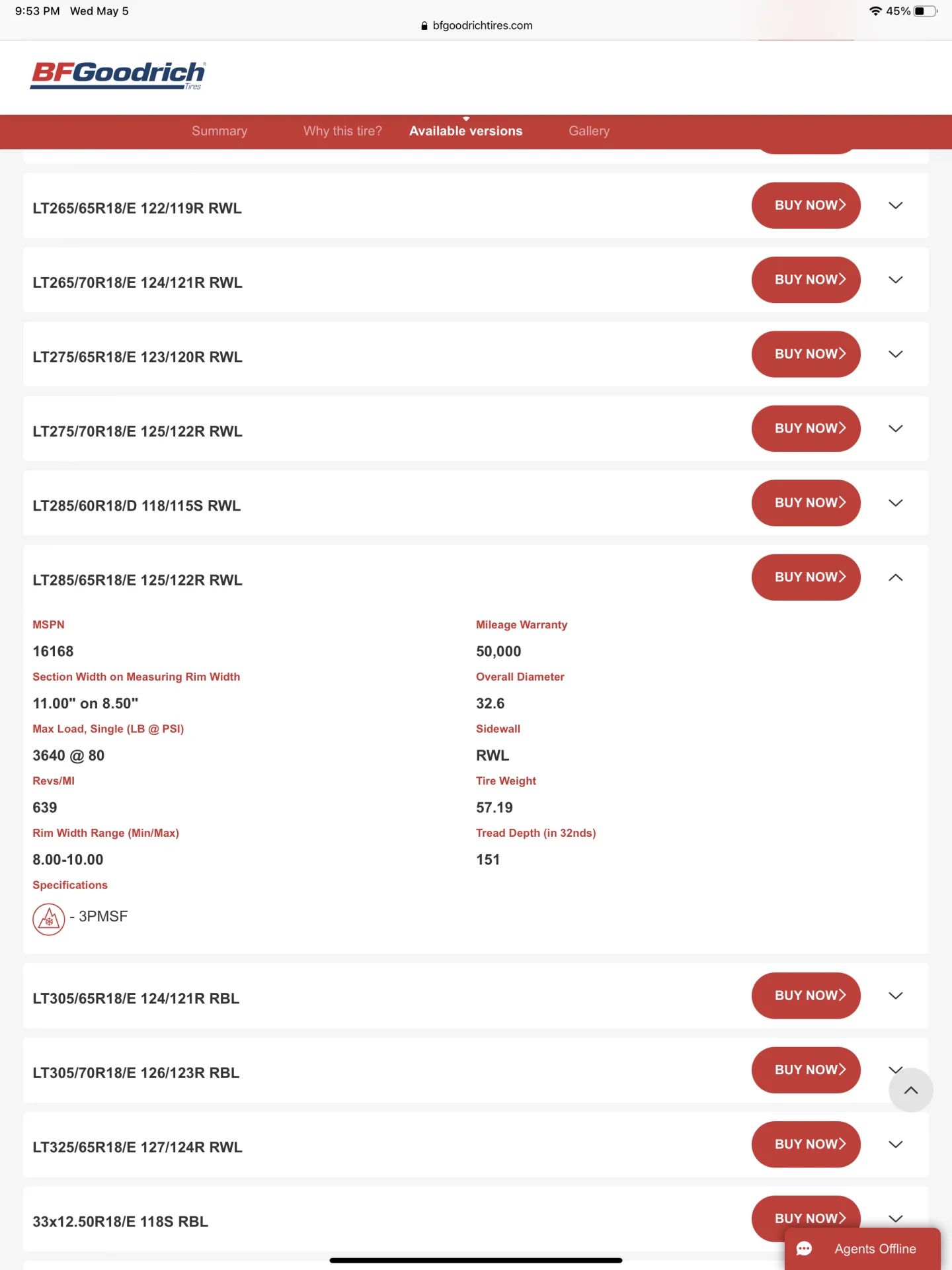 Further, the TRA (Tire and Rim Association), the folks who set the specifications for all things tire and rim (wheel) related, list the following "Approved Rim Contours" for all LT285/65R18 tires: