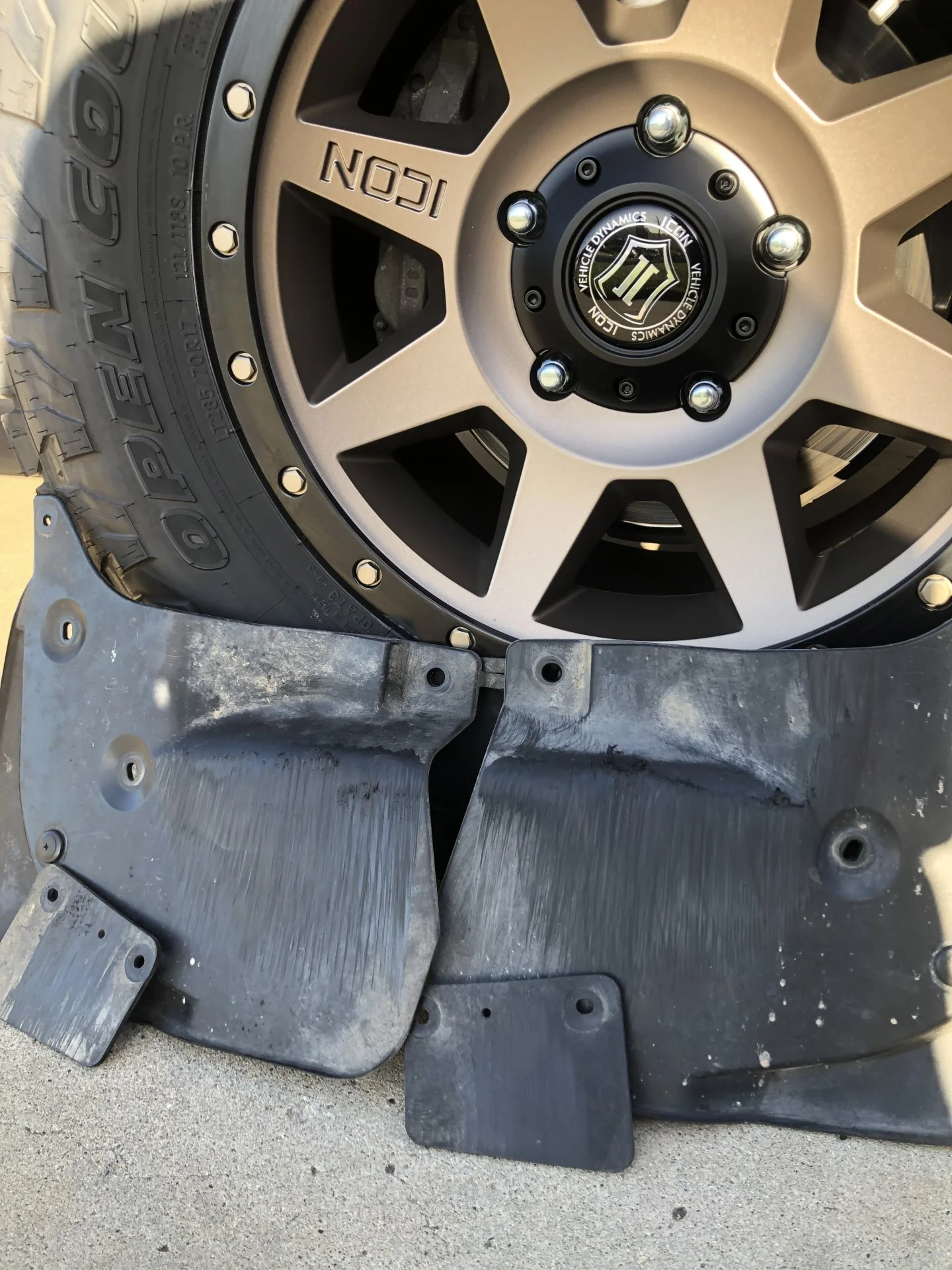 Went with Icon Rebound (25mm offset) in 17's (1817855557BR) as I like the more tire look. I am partial to Toyo's and went with their R/T's in 285/75/17. Glad I did a ton of research on this forum and this thread regarding sizing as they provide plenty of lift and fit the wheel well perfectly. Zero rub with the Dissent front bumper; just had to remove the front mud flaps. The road noise is roughly the same as the prior tire; minimal. FWIW the full size spare does fit underneath in the allocated space.