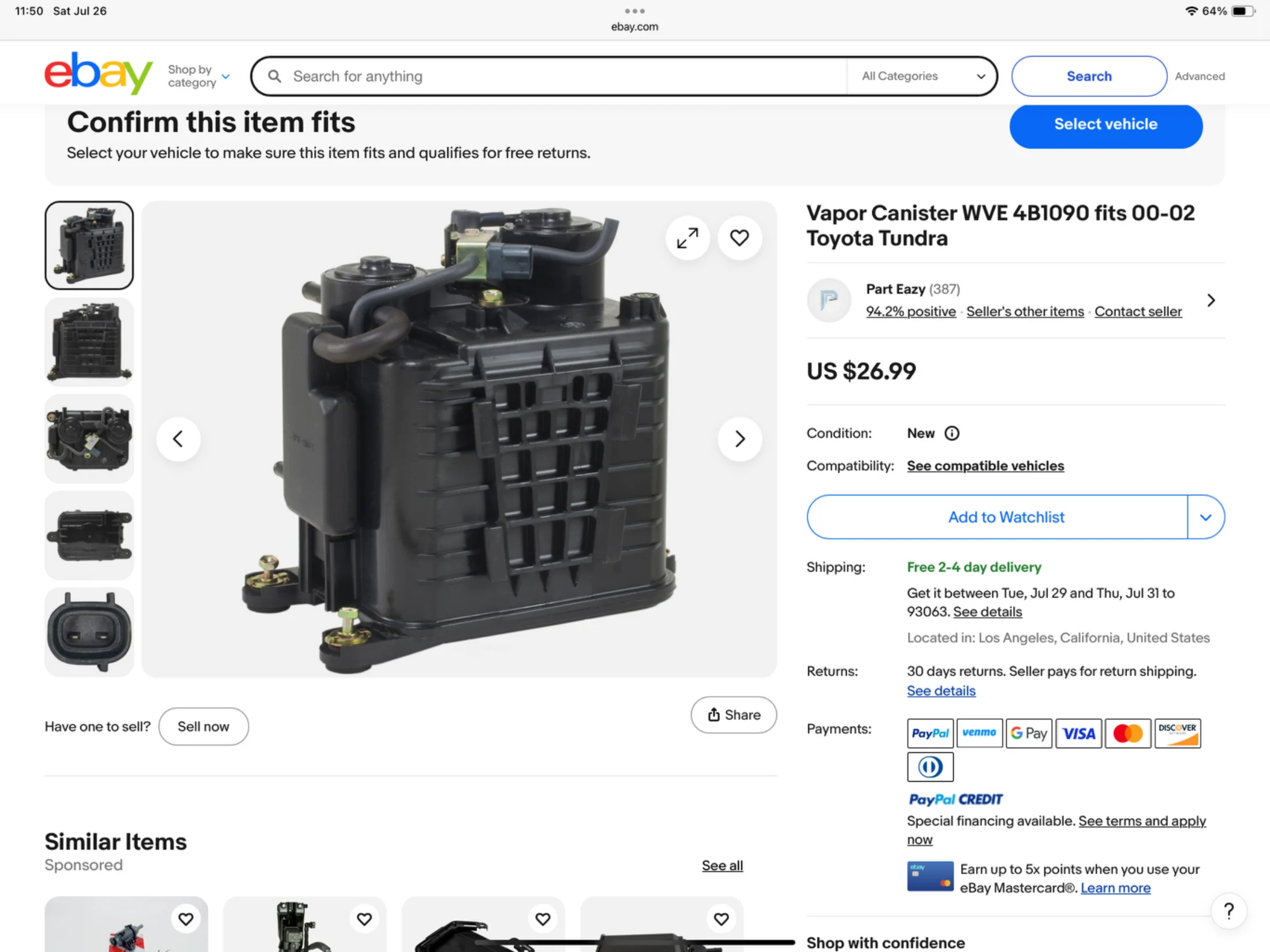 Any ideas on replacement charcoal canister options for a 2000LC? The OEM one is discontinued, and the Tundra alternative also appears to now be discontinued (I placed an order for one from ToyotaPartsDeal got an email back from them that it's been discontinued).