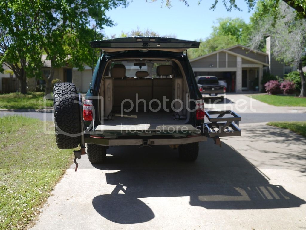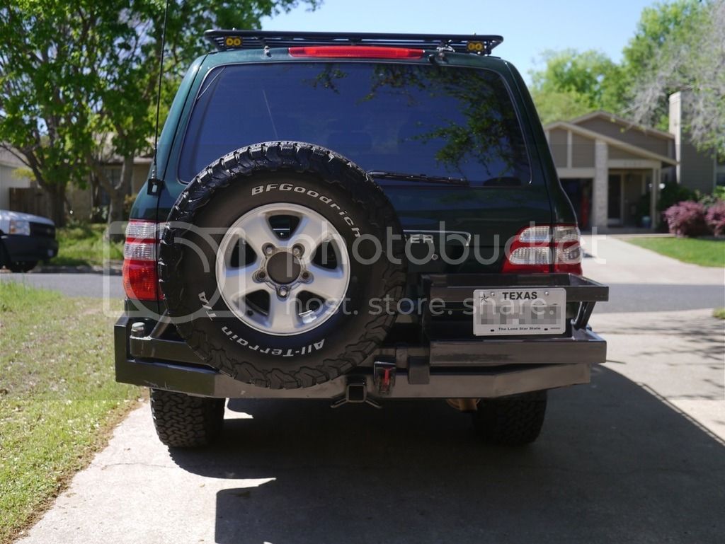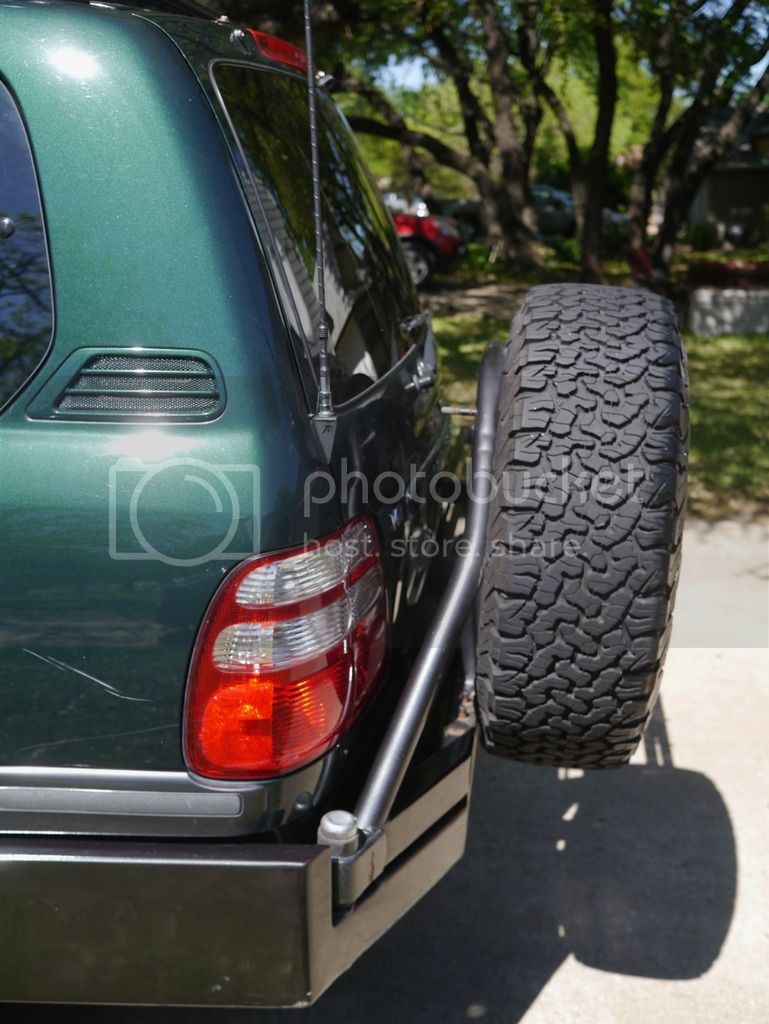 -Dual Swingout rear bumper, unsure of brand (tire and fuel/water carrier, capable of holding 3 scepter style 5 gallon cans. Will include to 5gallon gas and one 5gallon water in the sale)