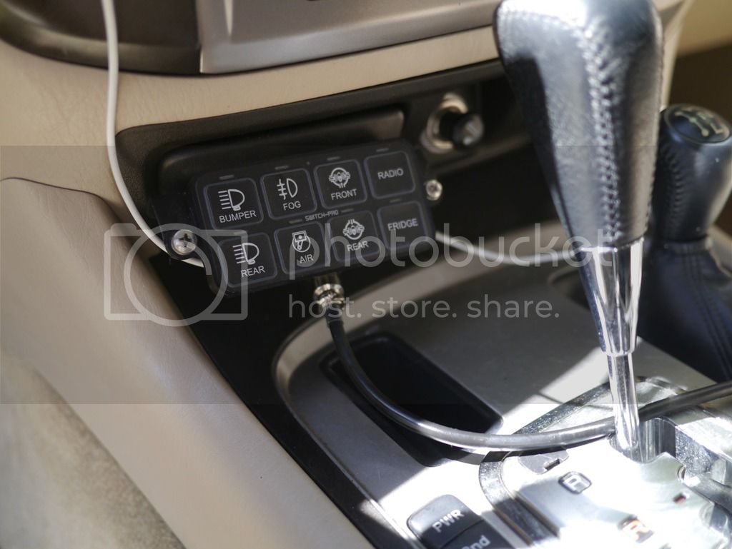 -Switch Pros switch system mounted to ashtray* (system allows for certain inputs to function on battery or only when ignition is on, also has Bluetooth, flash, and strobe options)