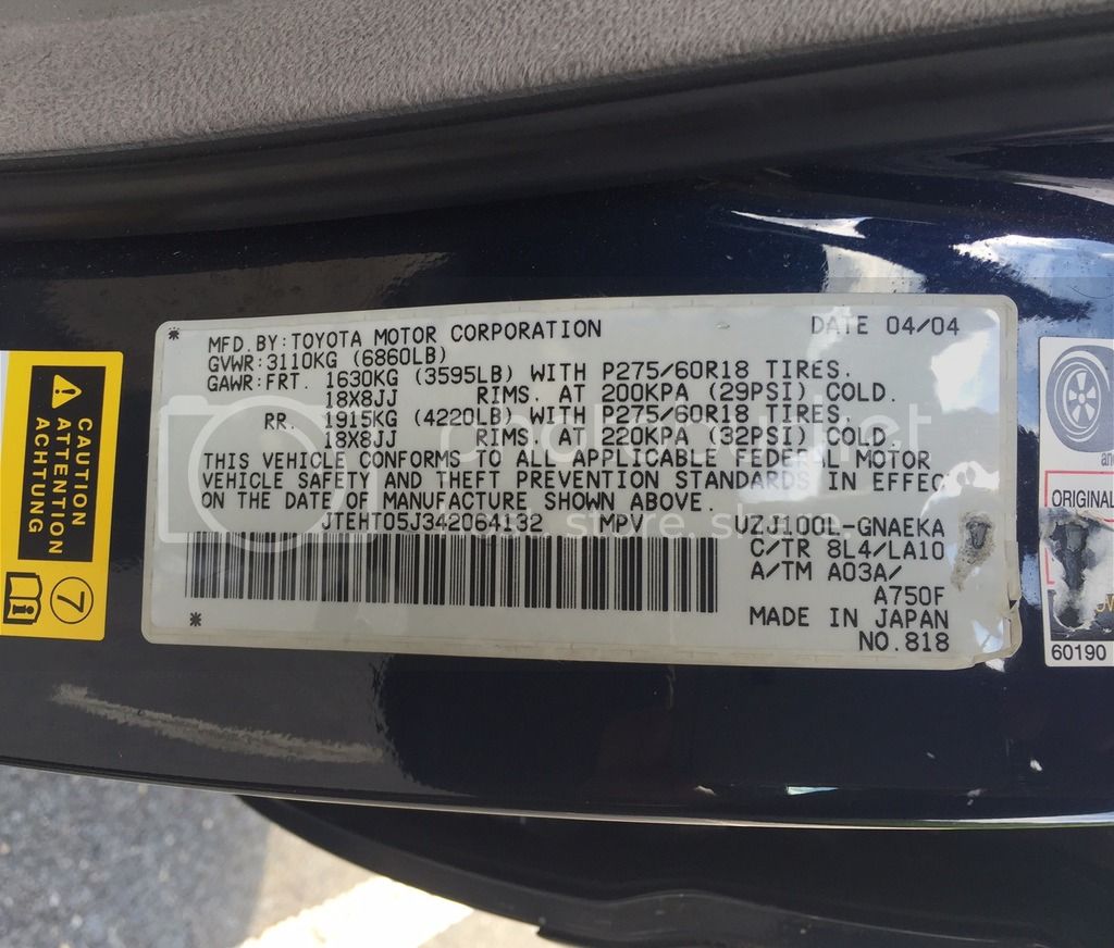 - Vehicle:2004 TOYOTA LANDCRUISER