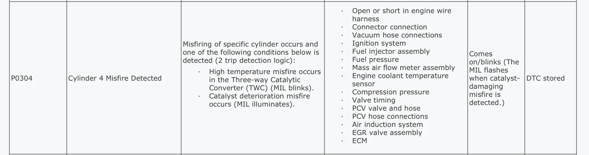 2) When I check my engine codes I got a P0304 - Cylinder 4 Misfire Detected.