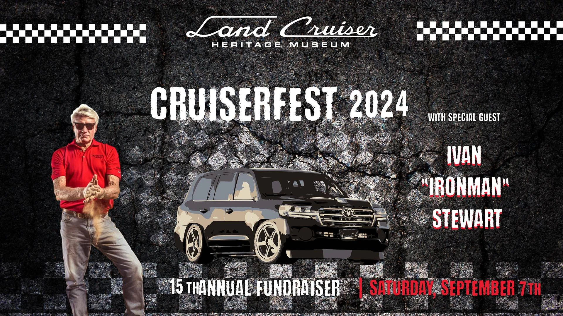 Join us for a day celebrating all things Land Cruiser. This exciting year we will explore outside the slow & steady stigma that surrounds our beloved Cruisers. Toyota USA joins us this year as the title sponsor for Cruiserfest and is bringing the Nothing is Impossible energy. CruiserFest will highlight Land Cruisers in racing, the world record fastest SUV (hint: it's a Land Cruiser!), the all new 2024 Land Cruiser, and special guest Toyota Racing living legend, Ivan "Ironman" Stewart! Ivan joins us to talk about his illustrious 30-year career in off-road racing. We're filling the day with expert guided tours, Hot Wheels racing, workshops, opportunity drawings, and our classic Show-N-Shine car show. This is not a CruiserFest to miss!