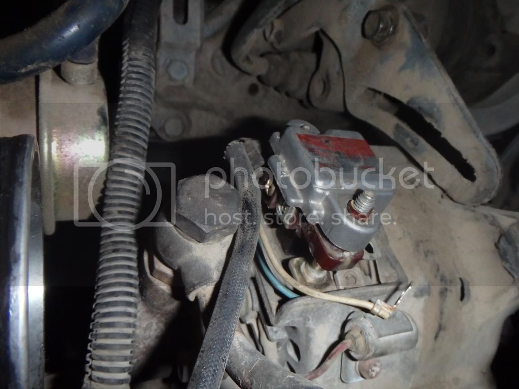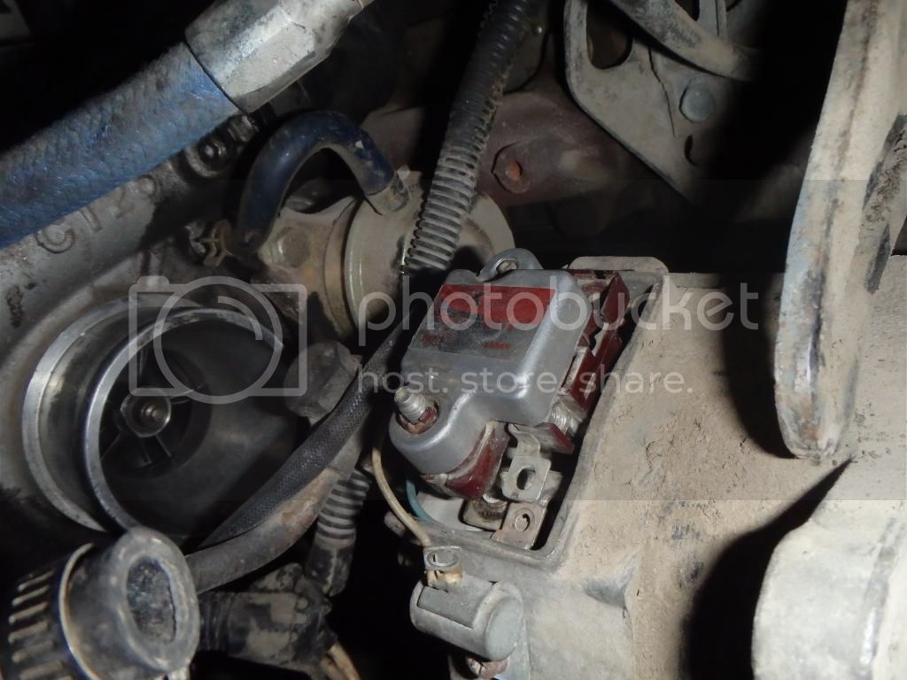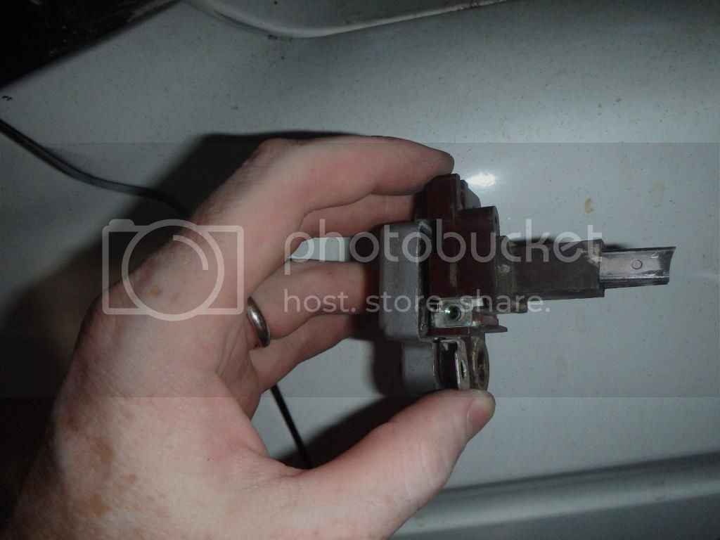 here's a pic with the regulator removed. The blue wire connects to the terminal its resting on, but I'm not sure if the white wire connects to the front facing terminal on the regulator or the passenger side rear facing terminal