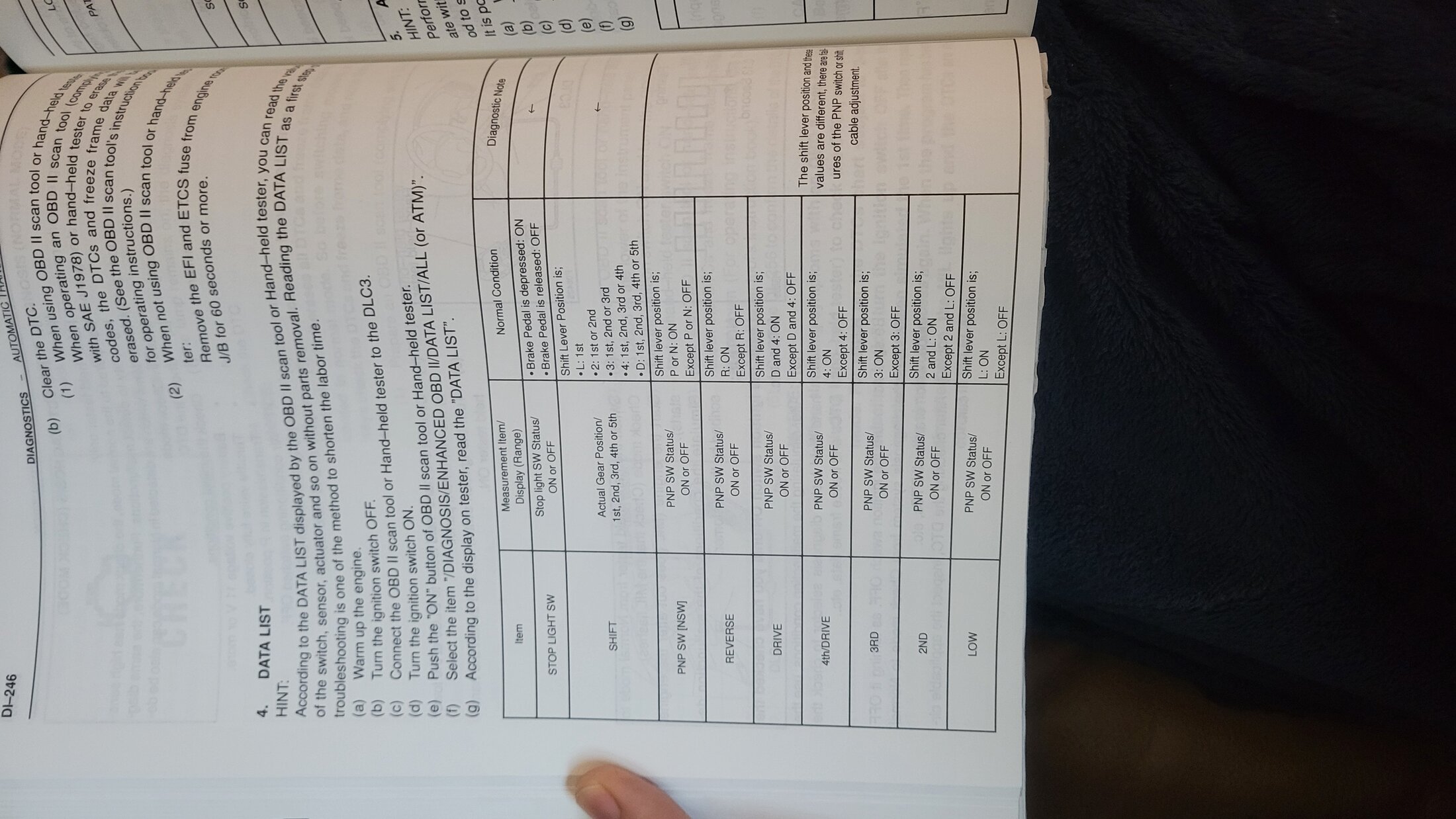 So I cleared the codes and took the truck out for a drive. First thing I noticed leaving the parking lot, it slams in to first gear when decelerating. Not great. Upshifts were smooth like they should be, but no shift to 5th. I played with the gear lever, going from D to 4 and back. There's a tiny but noticeable attempt to do