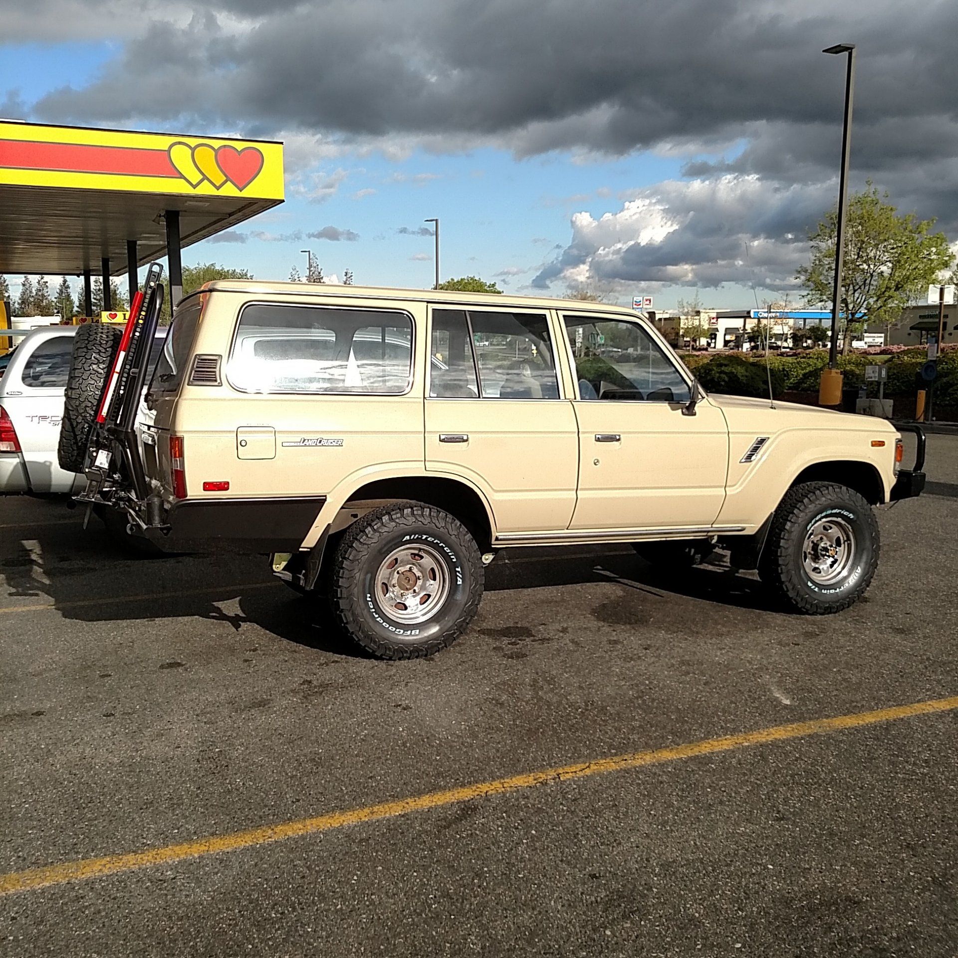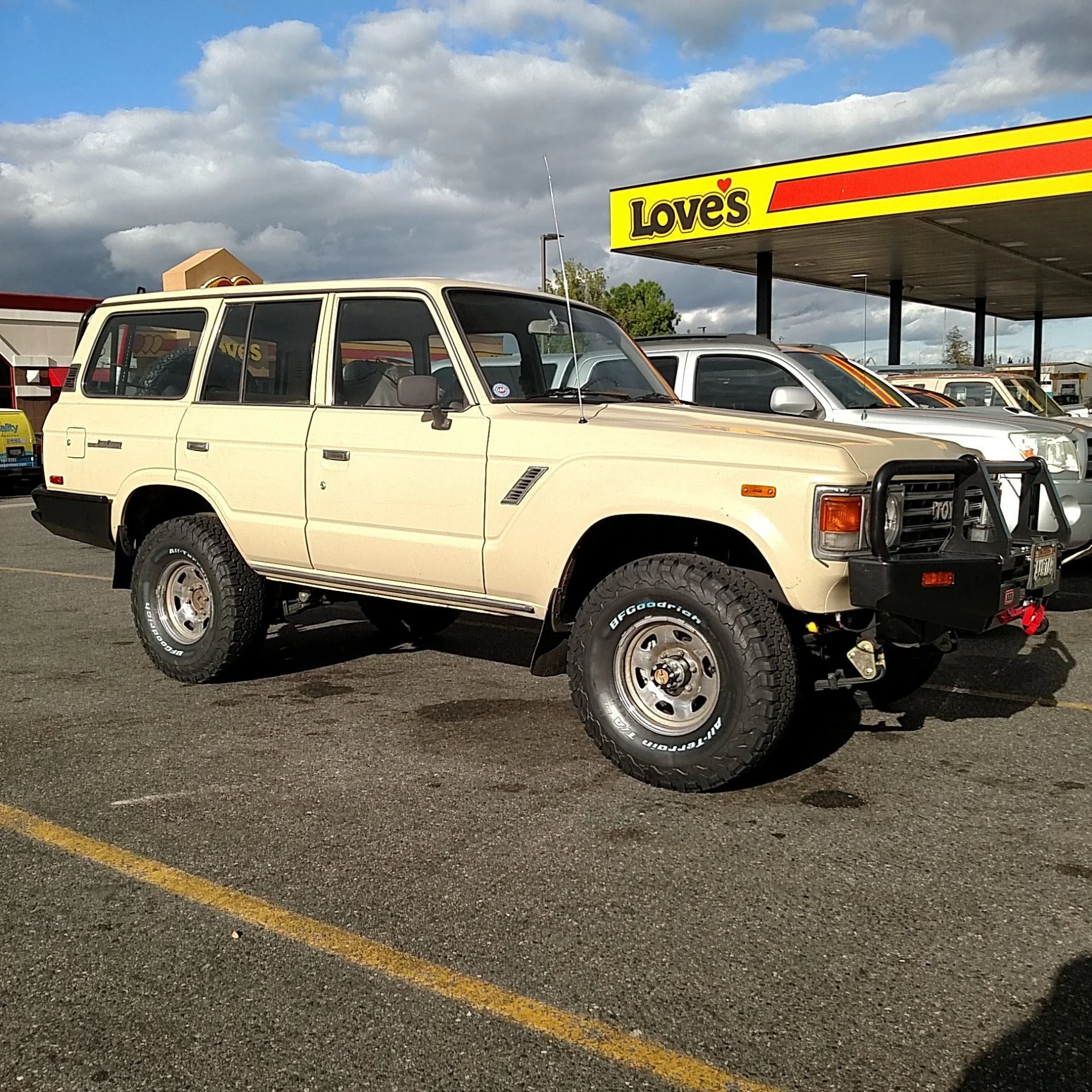 Specs: 1987 FJ60 mostly stock, just re-upholstered leather interior, dark black diamond-plate floors/trunk, new BFG A/T K02