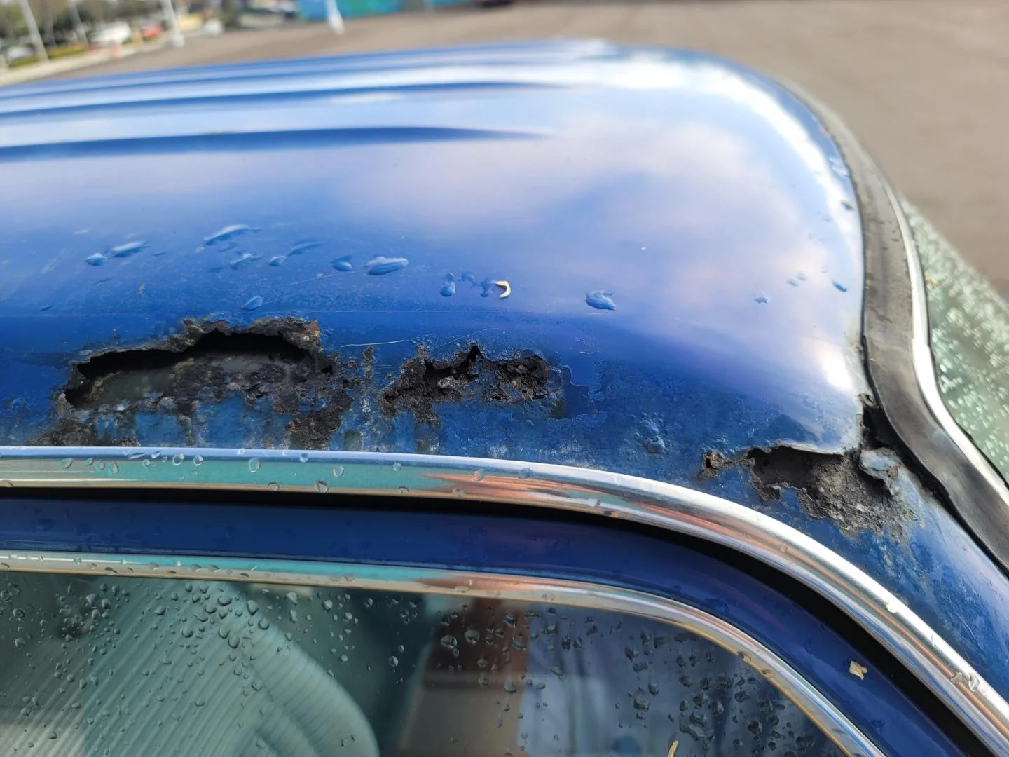 And when I had my 60 repainted, I had the shop cut a piece out of the roof gutter at each rearmost corner to help with drainage when parked slightly nose-up. It was covered by the chrome strip and probably completely unnecessary given what I've written above........