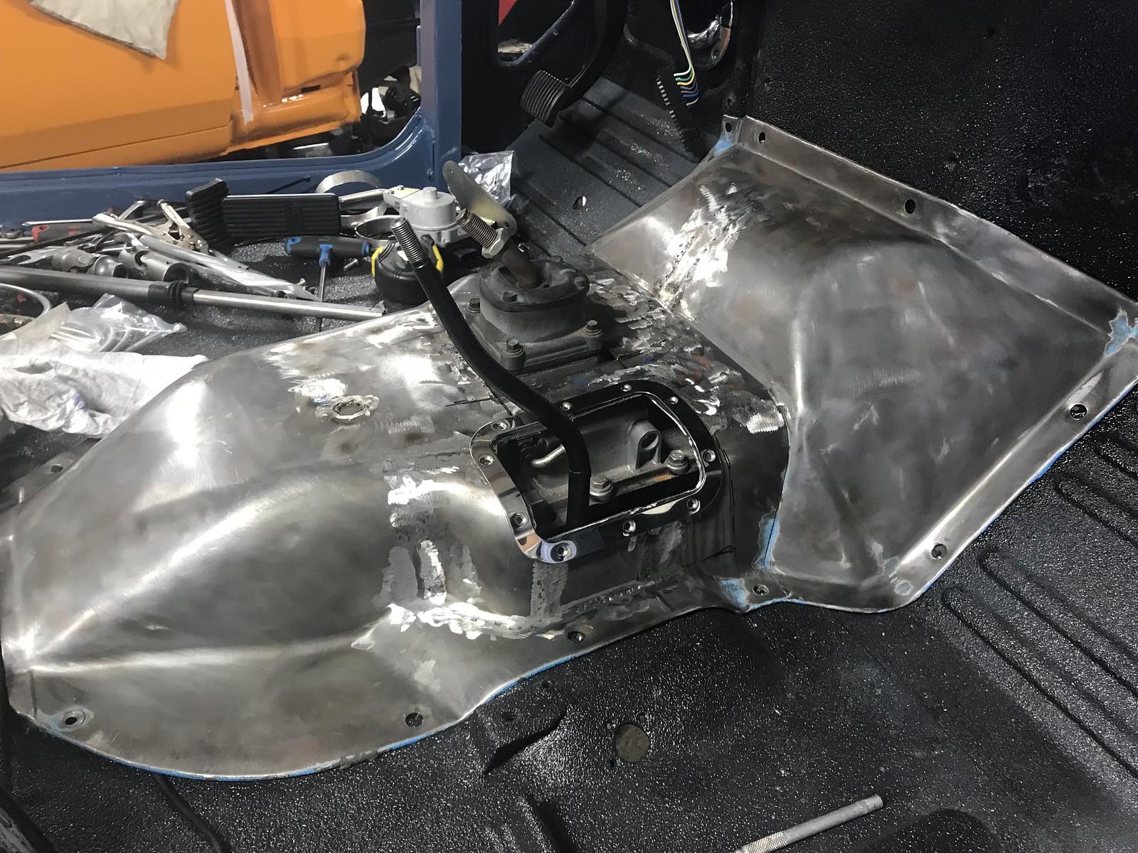 IMG_1036 by Steve Heck, on Flickrwith your transmission in that location so no major tranny hump mods are needed can i ask how low under your frame the bottom of the tranny sits?