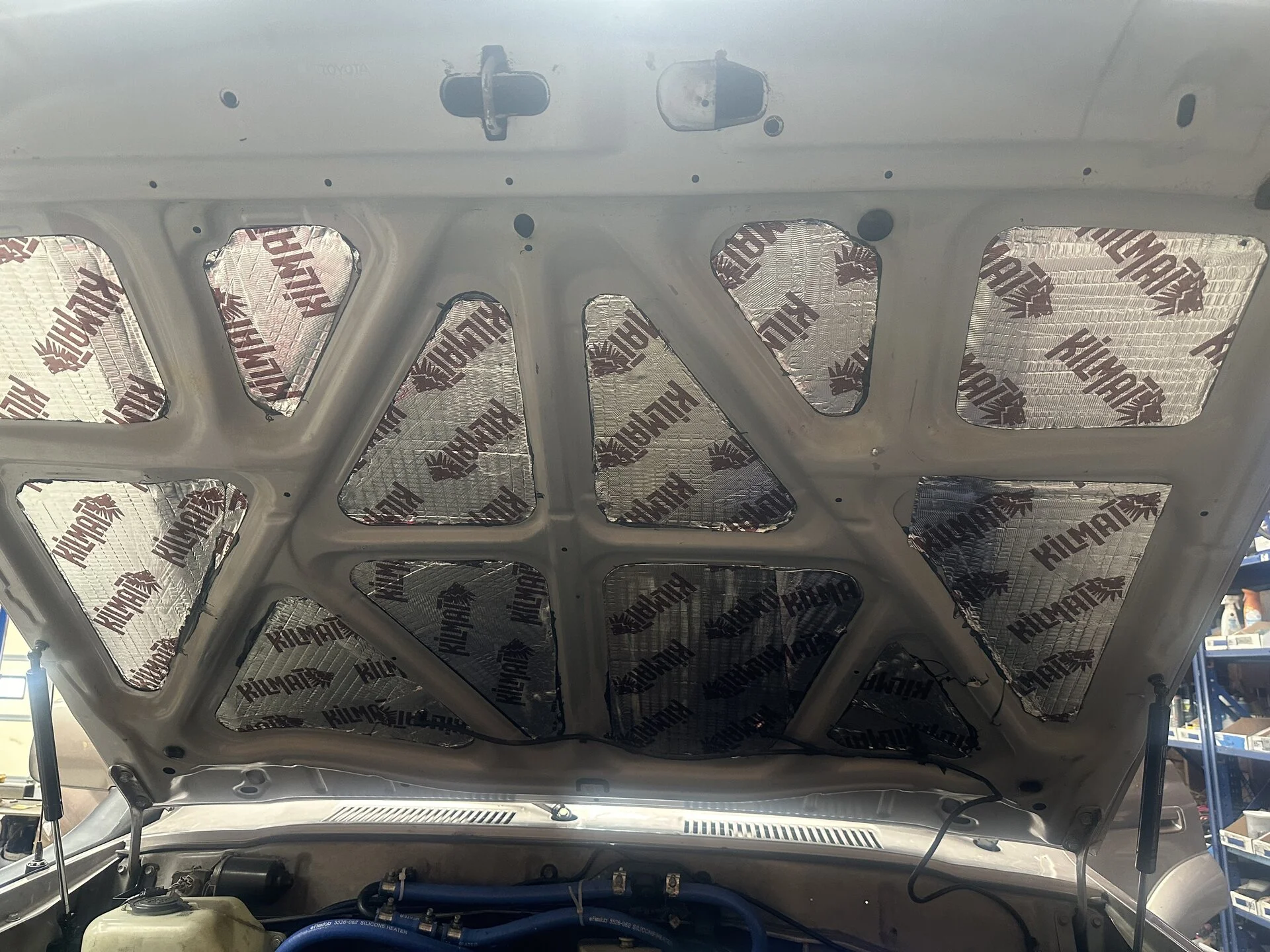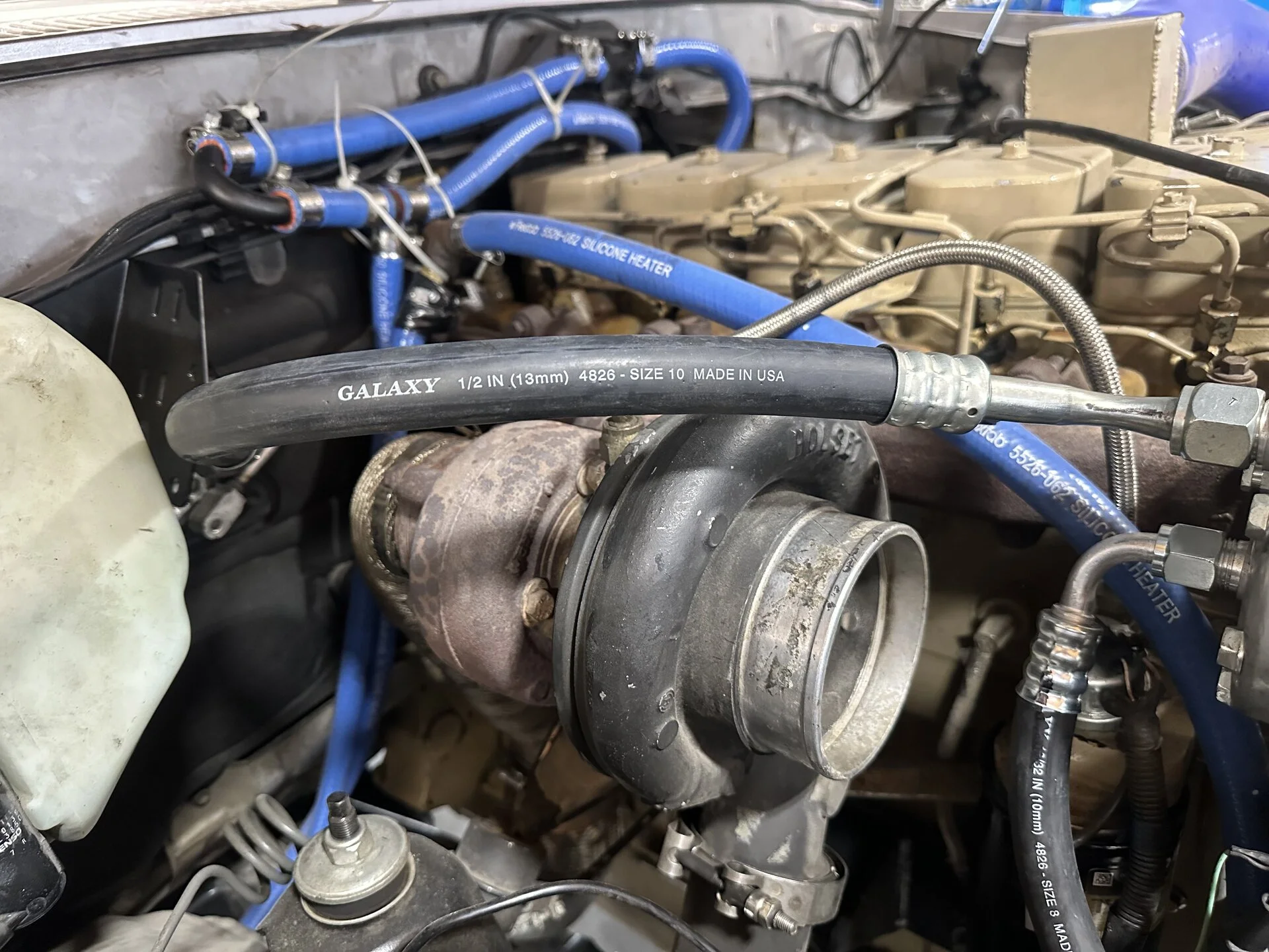 After wrapping up the hood sound deadening and epoxy work, I put a thermal blanket on the exhaust manifold and turbo. The noise level is acceptable inside the cab. I hear the turbo more than anything and may put the turbo ring back in turbo intake.