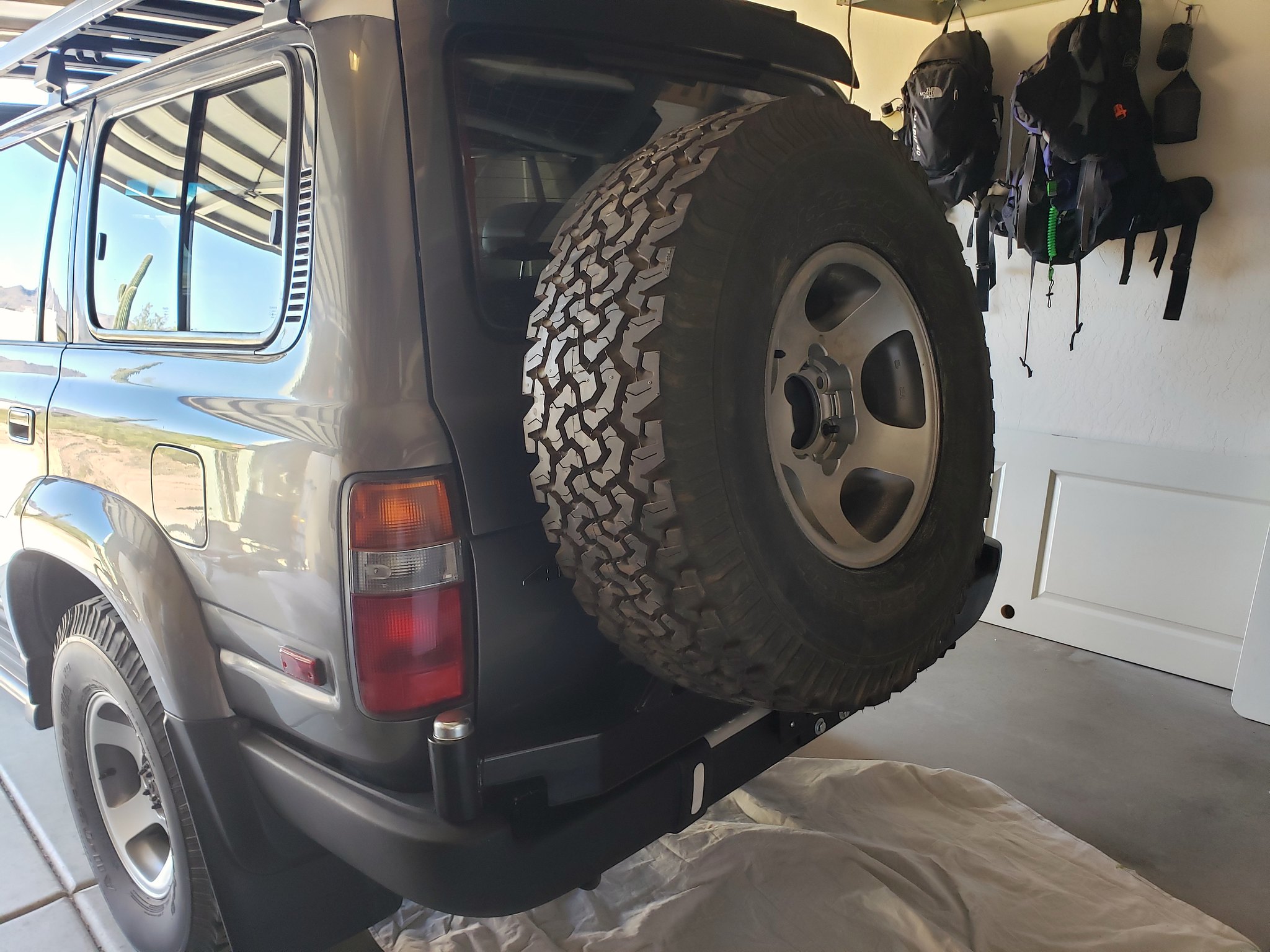 I would be interested if there was consideration of shipping, but I totally get not wanting to mess with it. This would be for a trail/bush rig and aesthetics are really not a concern. I just need to get a spare on here somewhere, without putting it inside, or sometimes reluctantly on the roof.I think I would feel better if the buyer laid eyes on what they are getting. I don't want to misrepresent anything.