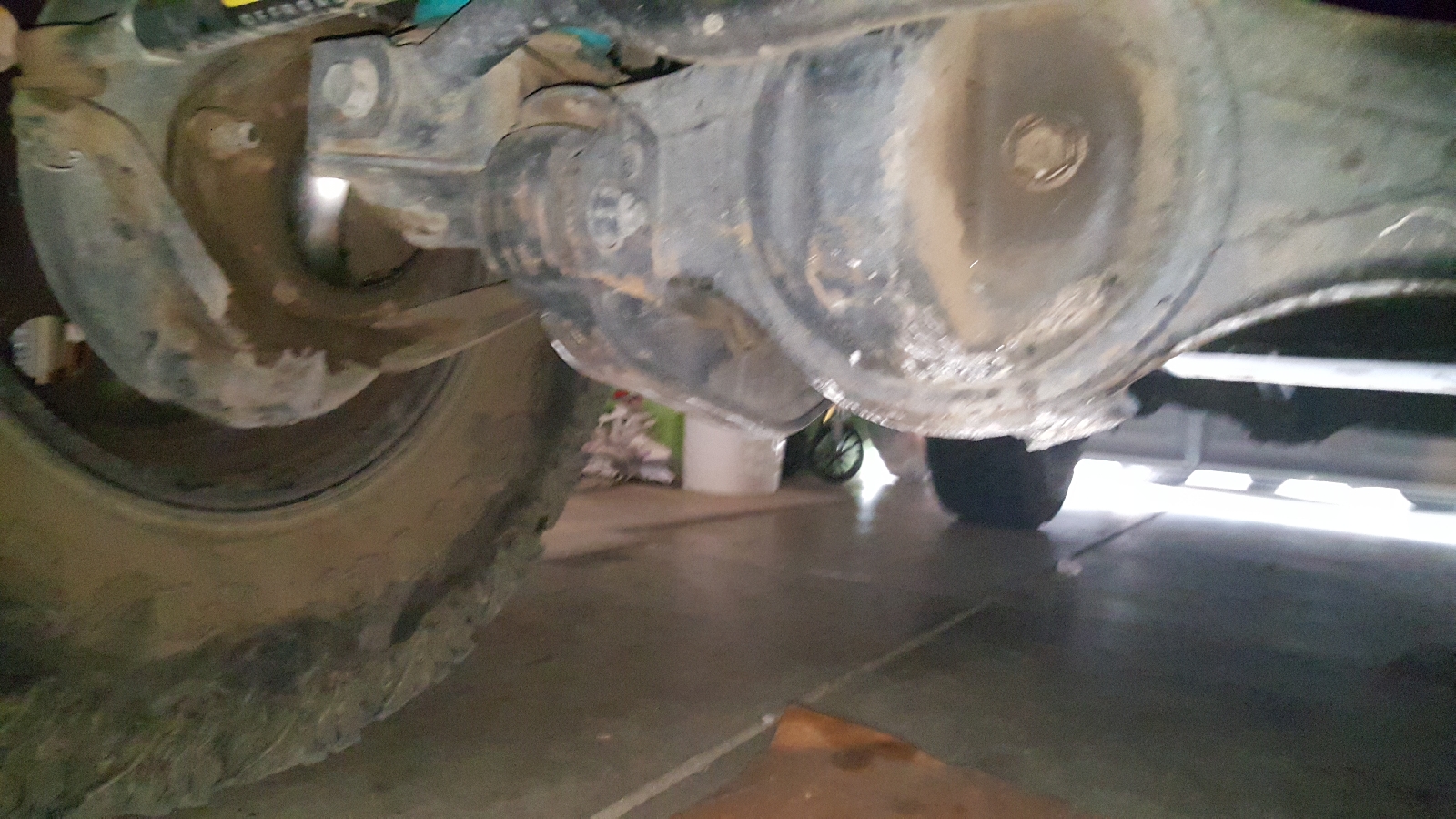 the muffler took a big hit toward the driveline.