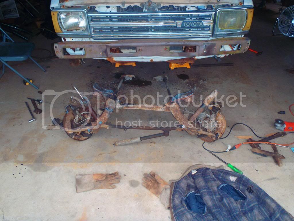 Well I thought I would share my little build with you guys.First off it started its life as a 1981 toyota 2wd with the rare factory 2L diesel.When I purchased the truck it had been setting out a holler road with weeds growing up around it.Heard about it though word of mouth.It had only been setting for a couple years,put in a new battery and in true toyota fashion she fired right up and purred like a kitten.I could not drive it cause the 2wd trans was bad and setting in the floor board.LOL.I could see the diamond in the rough so I drug it home