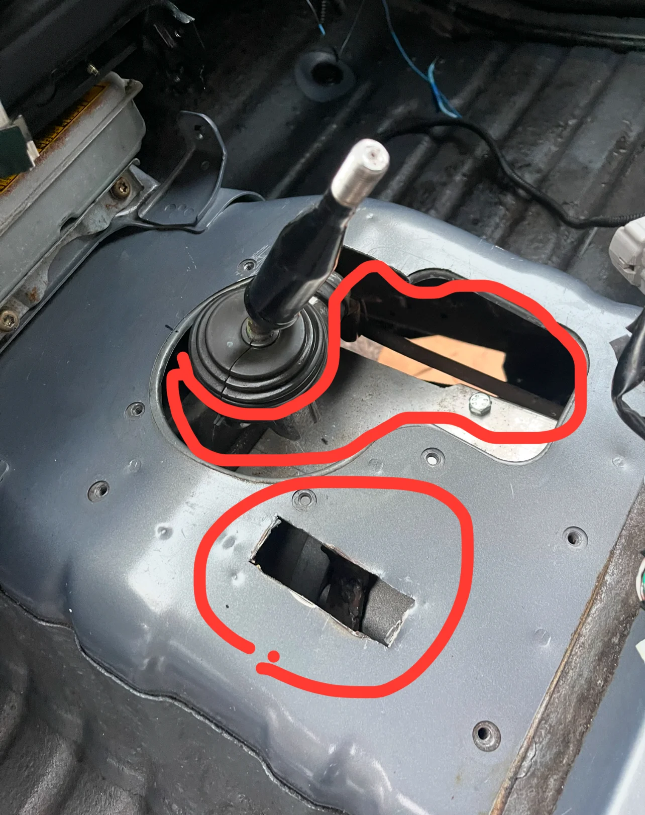 I was getting excessive heat into the cabin (some openings on the shifter metal plate, allowing heat from the engine, exhaust and tranny to trasmit). The plastic panels were hot. I wrapped it with two layers of sound deadening, exhaust heat shield, heat tape…Hope it will reduce the heat. By the way, be careful with the plastic piece (with tape on it), old so it cracked so I taped it up. Also, the sensor.. there is a warning (yellow sticker) asks us to position in the same position or will be unsafe if you relocate it.