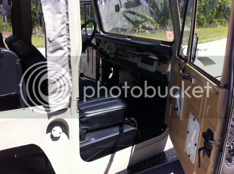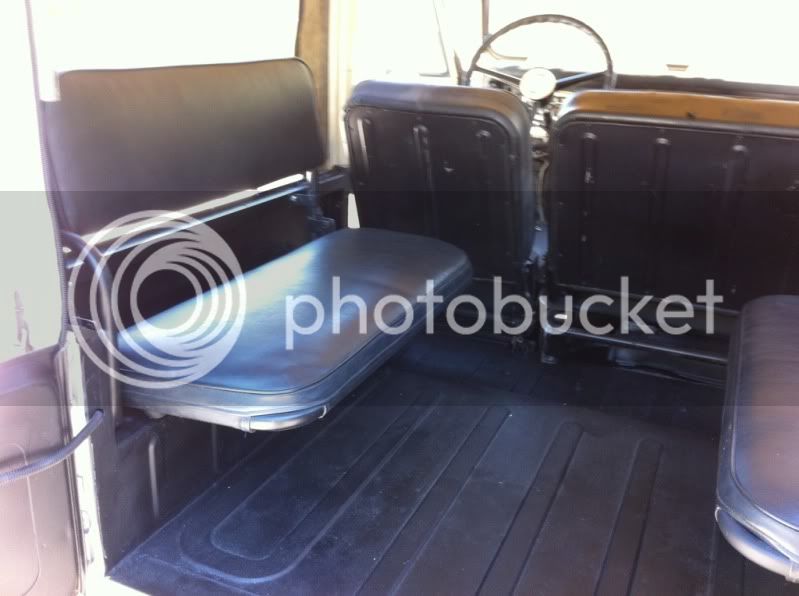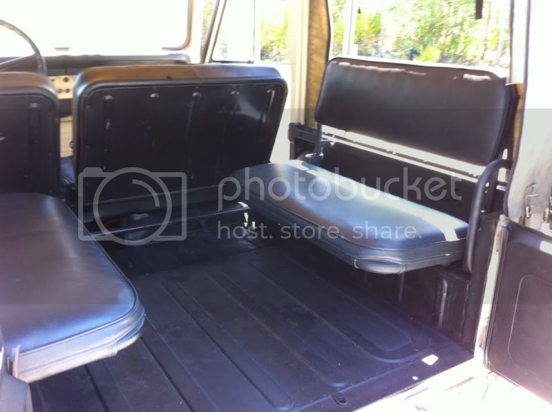 Everything works, Tcase shifts well, and tranny is surprisingly quiet at speed. The factory front seats are faded with expected tears here and there and a burn in the passenger seat where the PO left his work light on. AUX power receptacle in the glove box works well. It has long jump seats in the rear that the kids love, look to have been recovered recently.